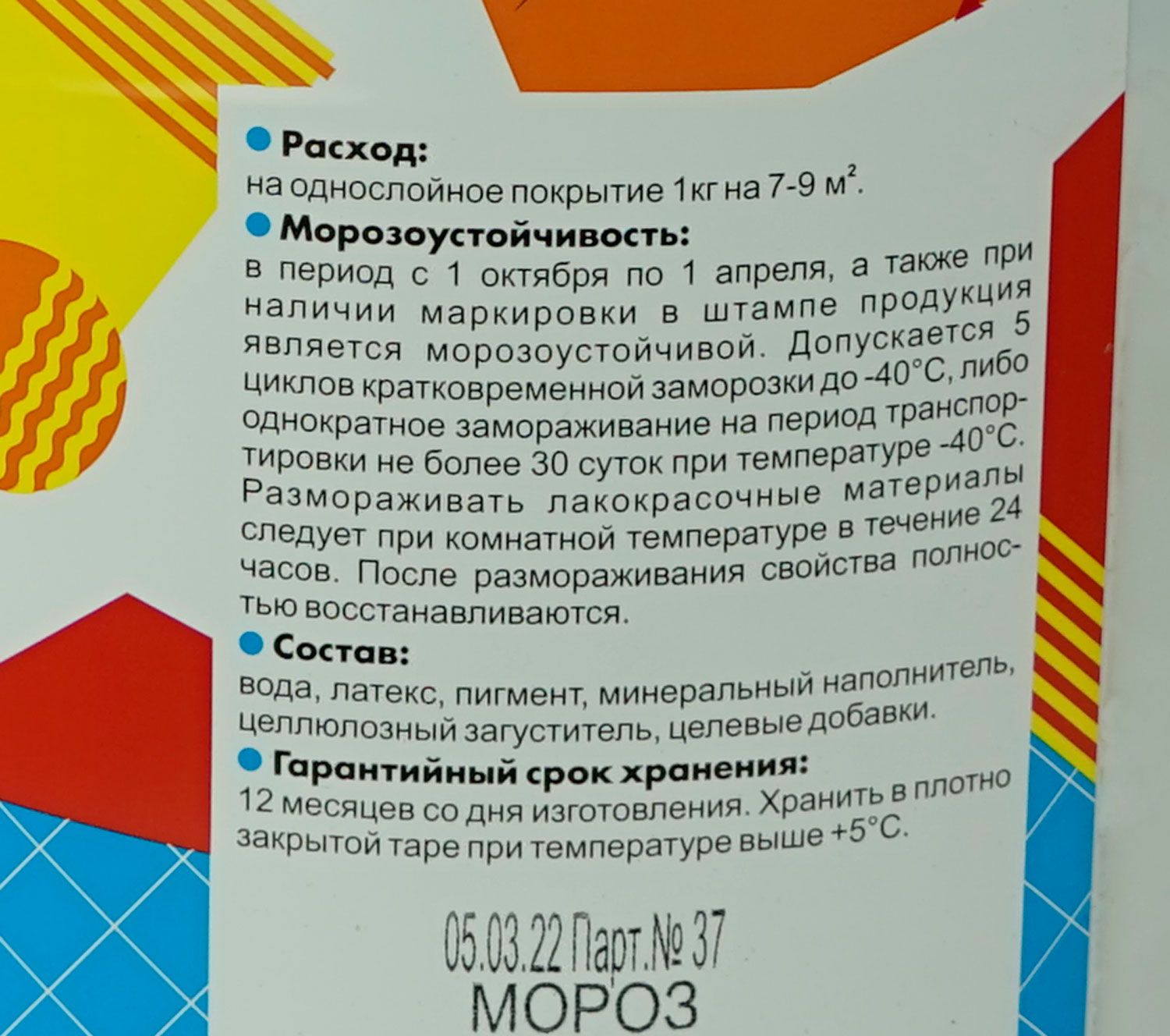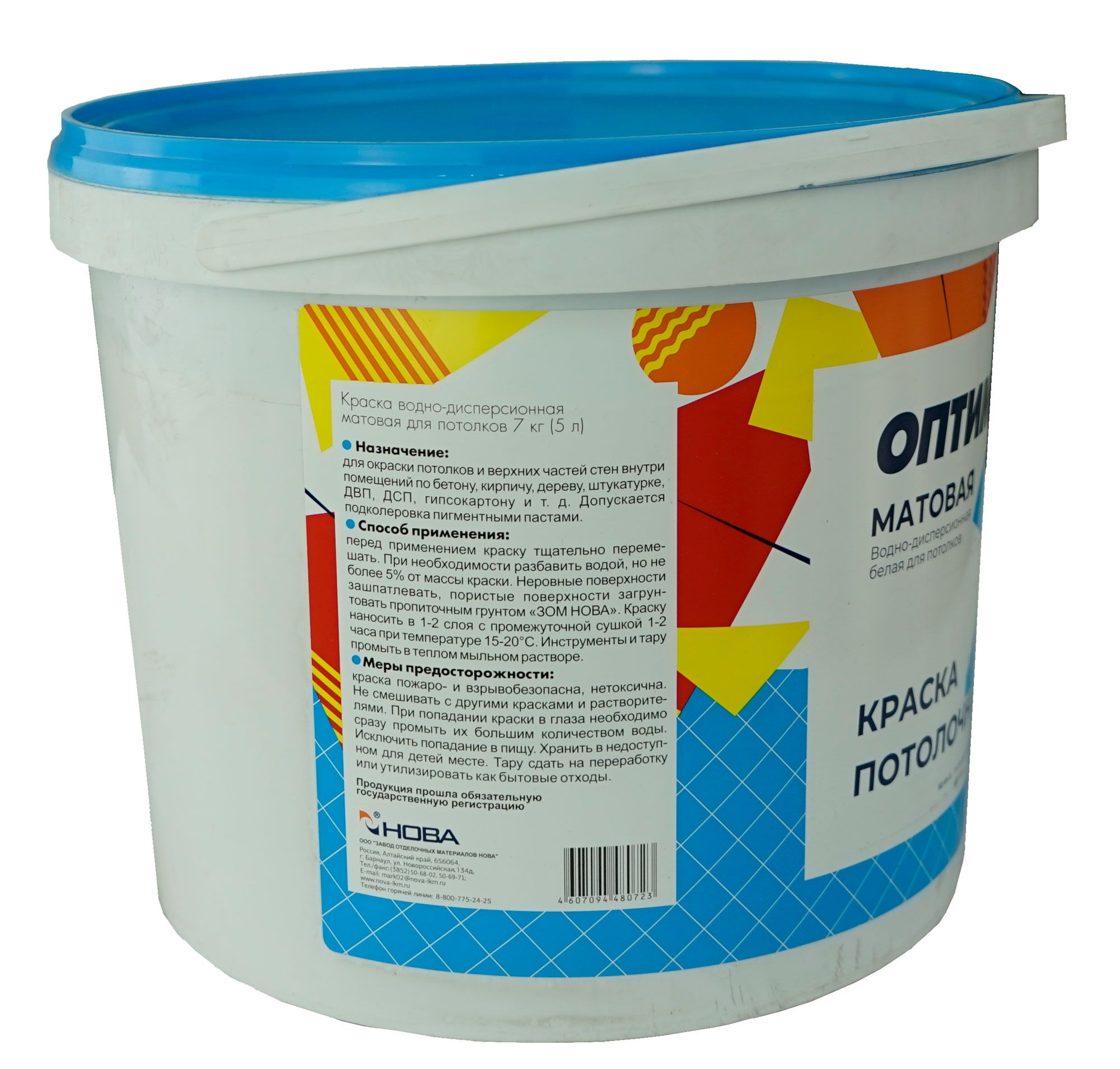 Латексная краска для потолков и верхних частей стен в жилых и административных помещениях по бетону, кирпичу, дереву, штукатурке, ДВП, ДСП, гипсокартону и т.д. Имеет хорошую укрывистость, матовое покрытие. Улучшенные свойства и белизна. Допускается подколеровка пигментными пастами.