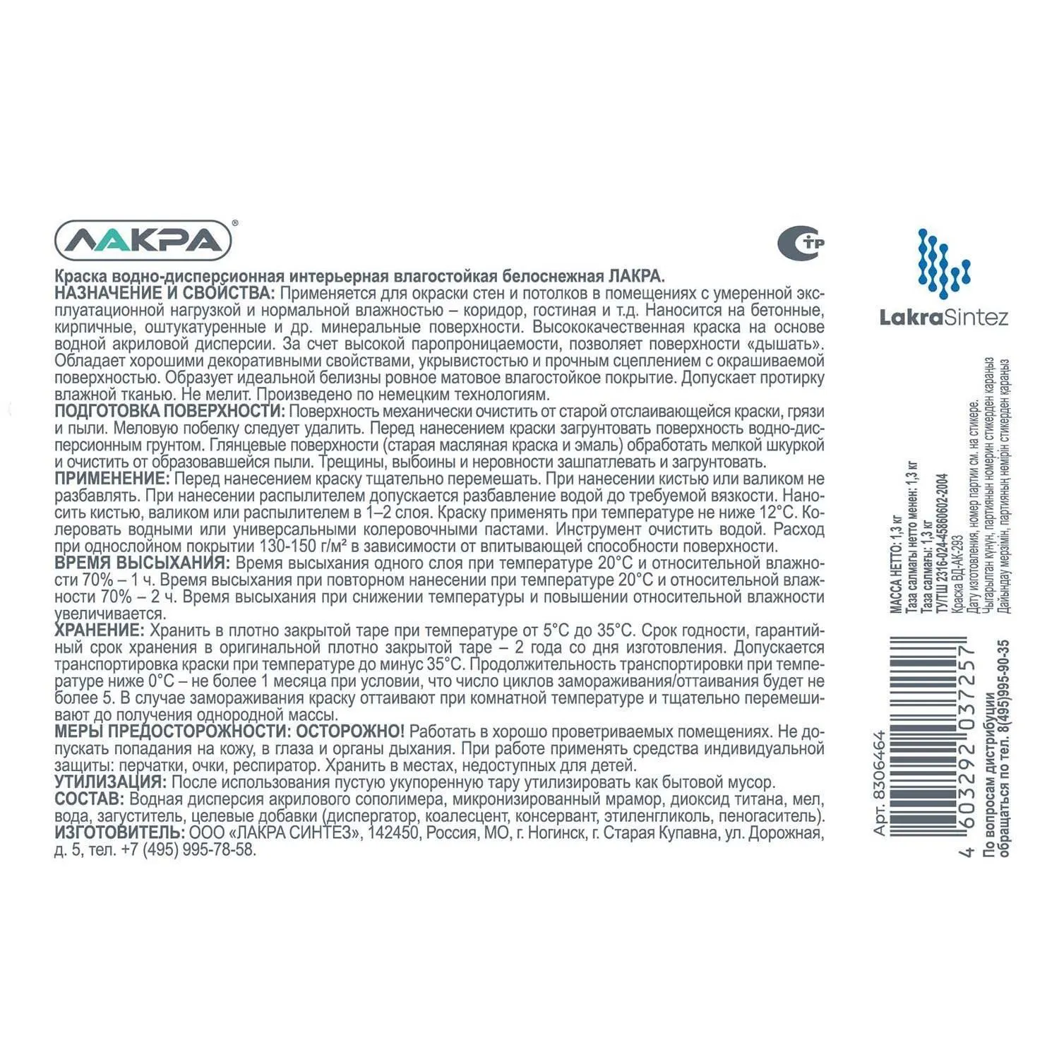 Высококачественная краска на основе водной акриловой дисперсии.
