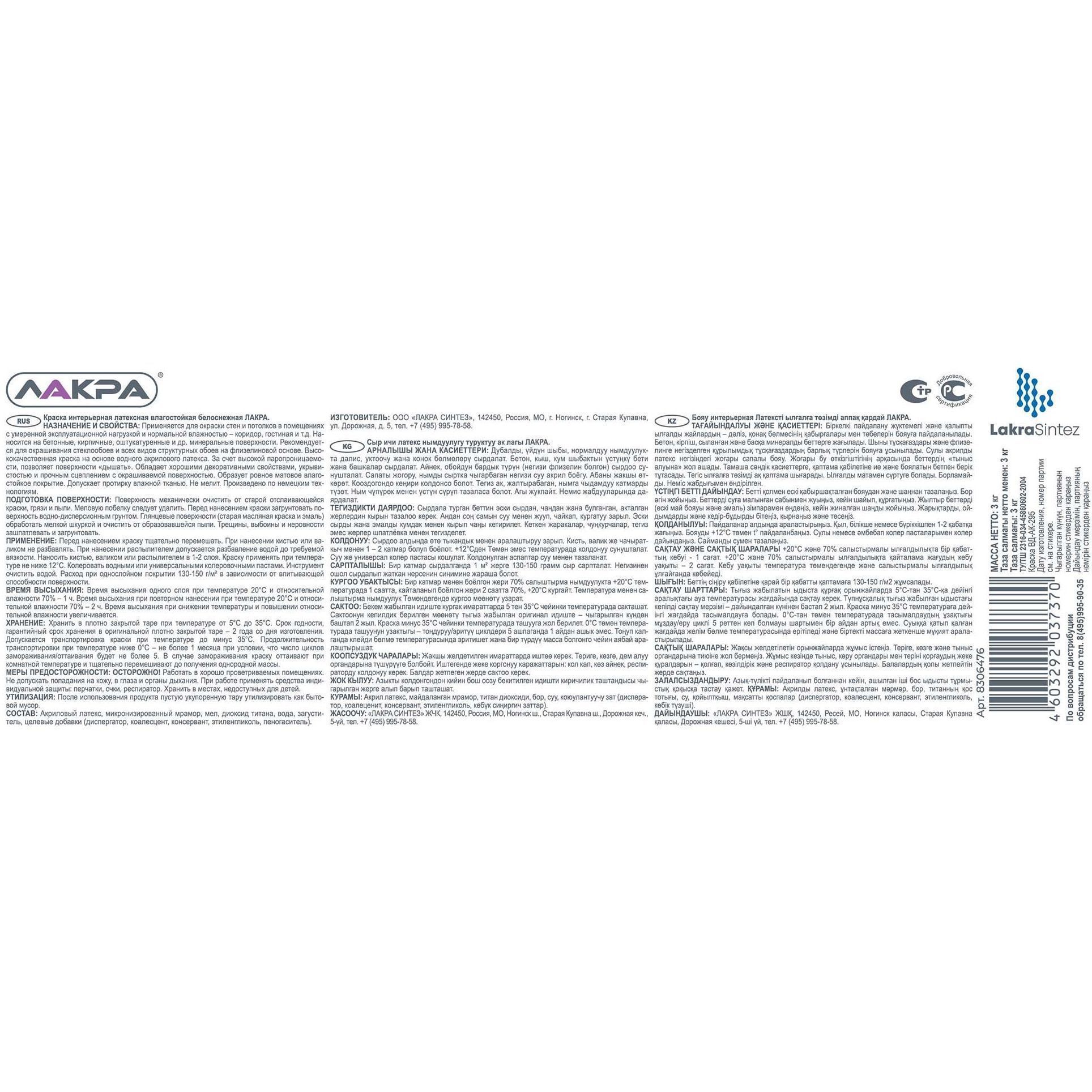 Лакра влагостойкая – высококачественная краска на основе водного акрилового латекса.