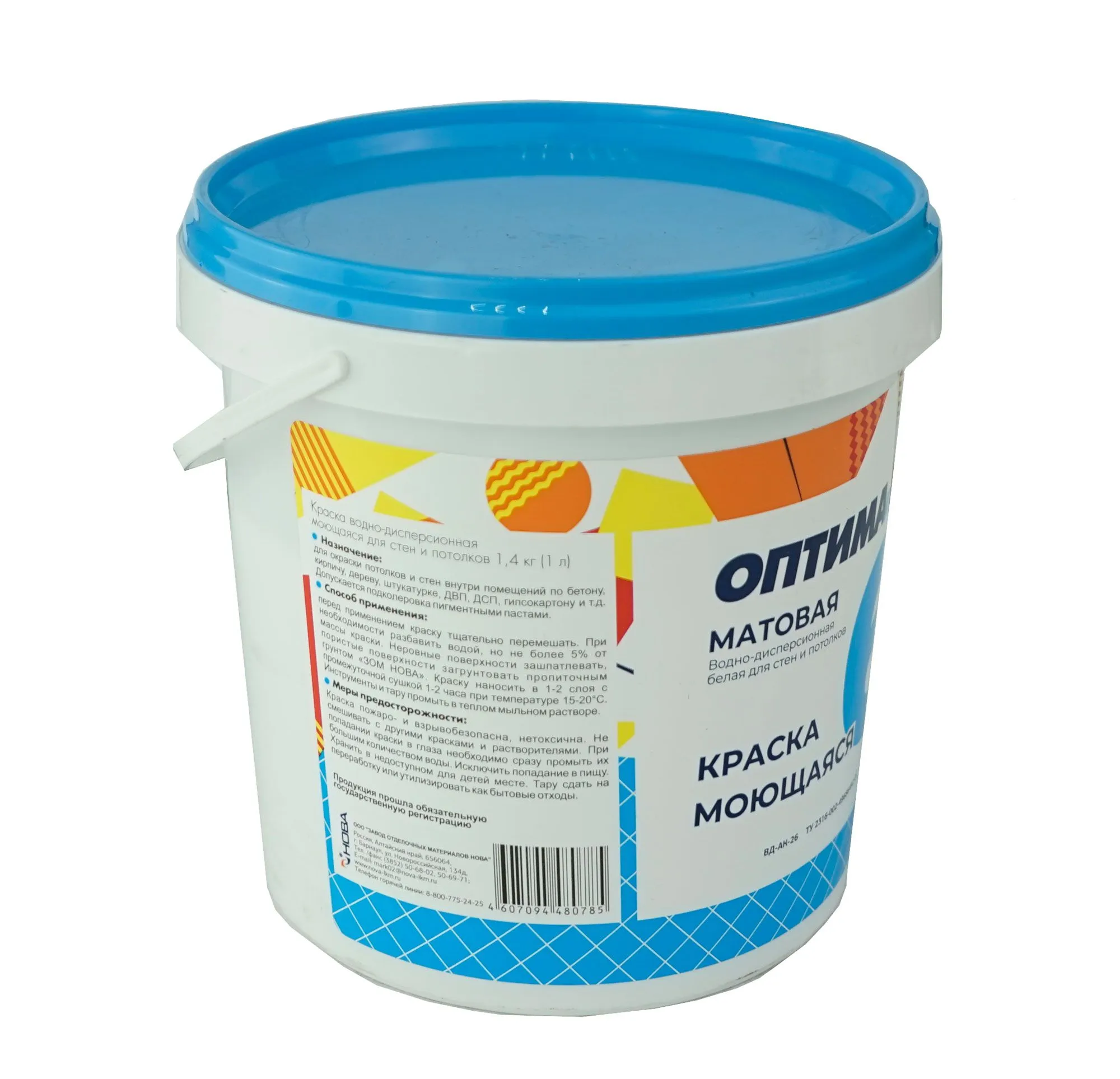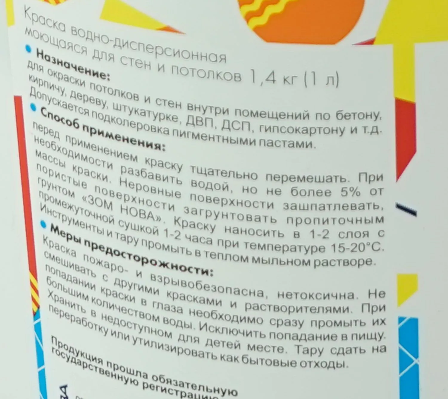 Краска водно-дисперсионная моющаяся для потолков и стен.