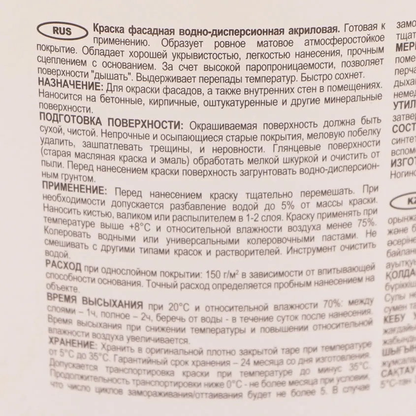 Для окраски фасадов, а также внутренних стен в помещениях. Наносится на бетонные, кирпичные, оштукатуренные и другие минеральные поверхности.