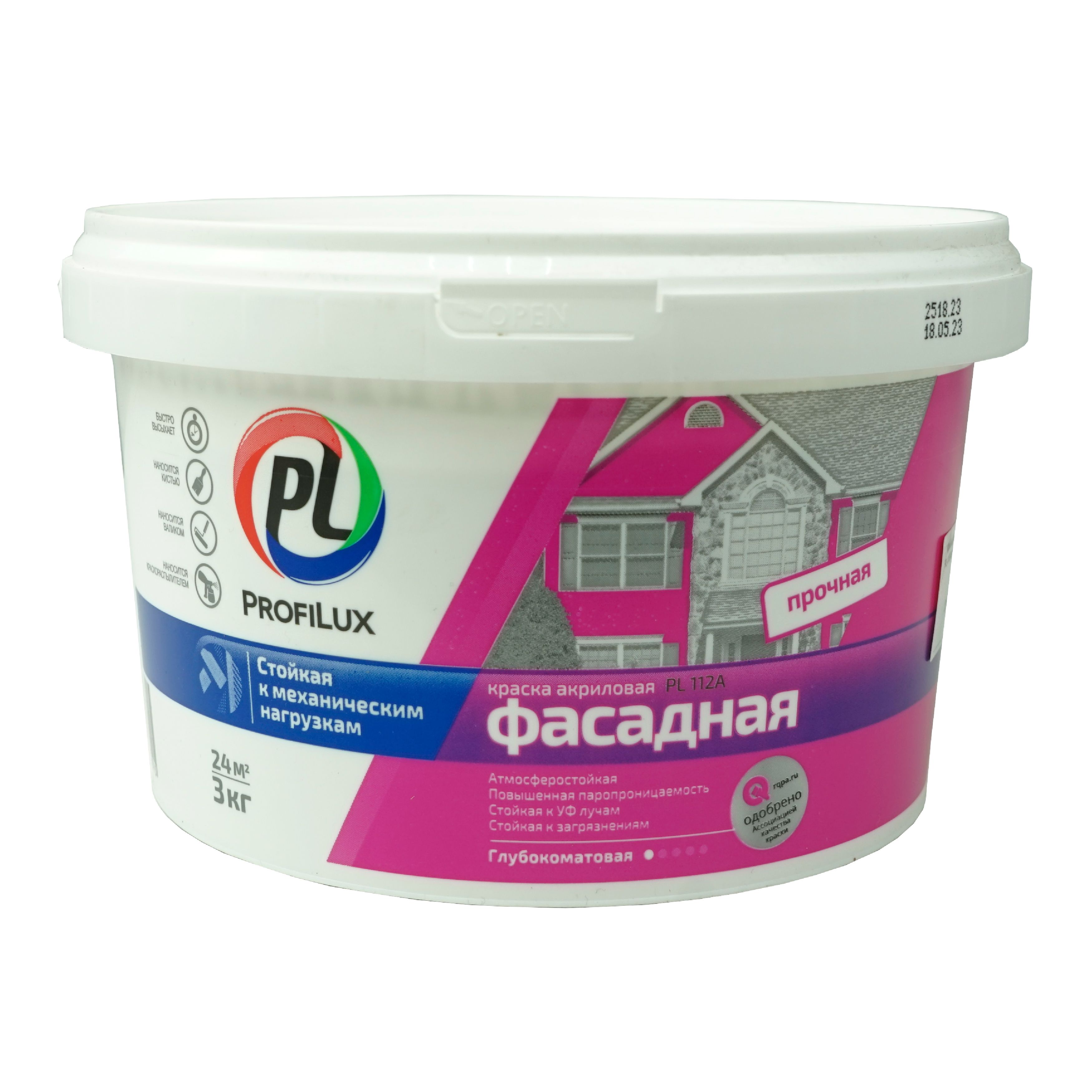 Фасадная влагостойкая краска Profilux предназначена для защитно-декоративного окрашивания минеральных оснований (бетон, кирпич) внутри и снаружи помещений. Состав быстро сохнет и отличается высокой укрывистостью.