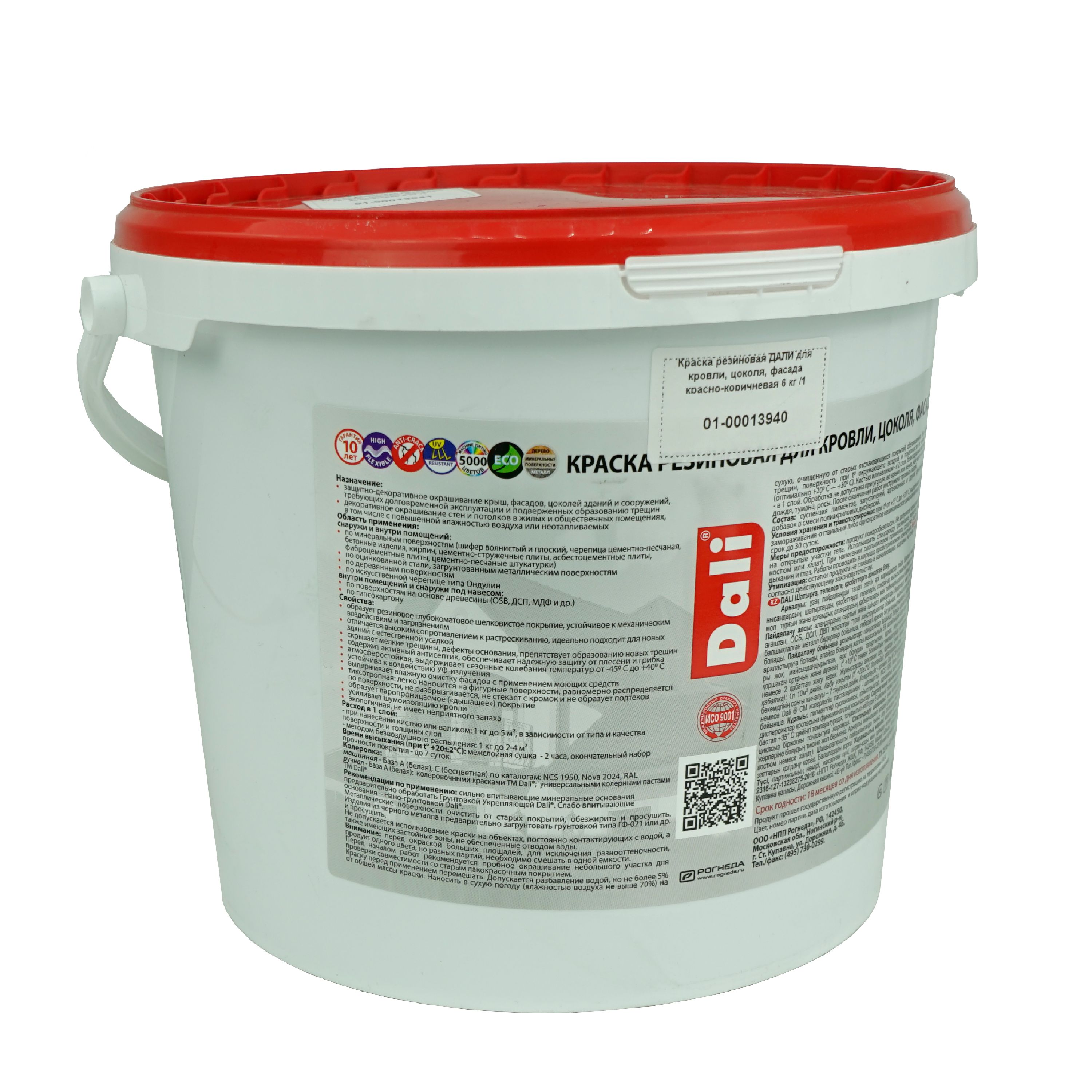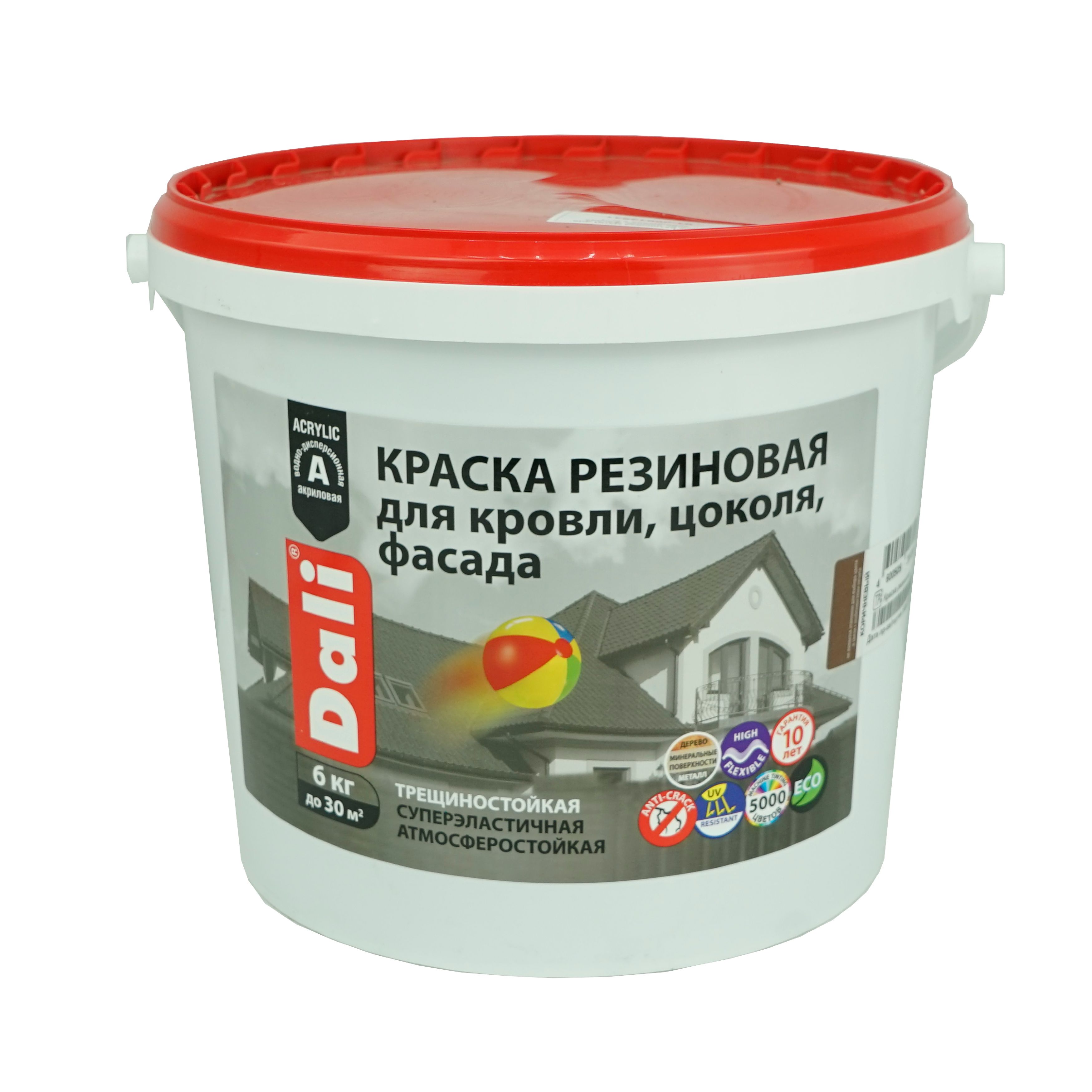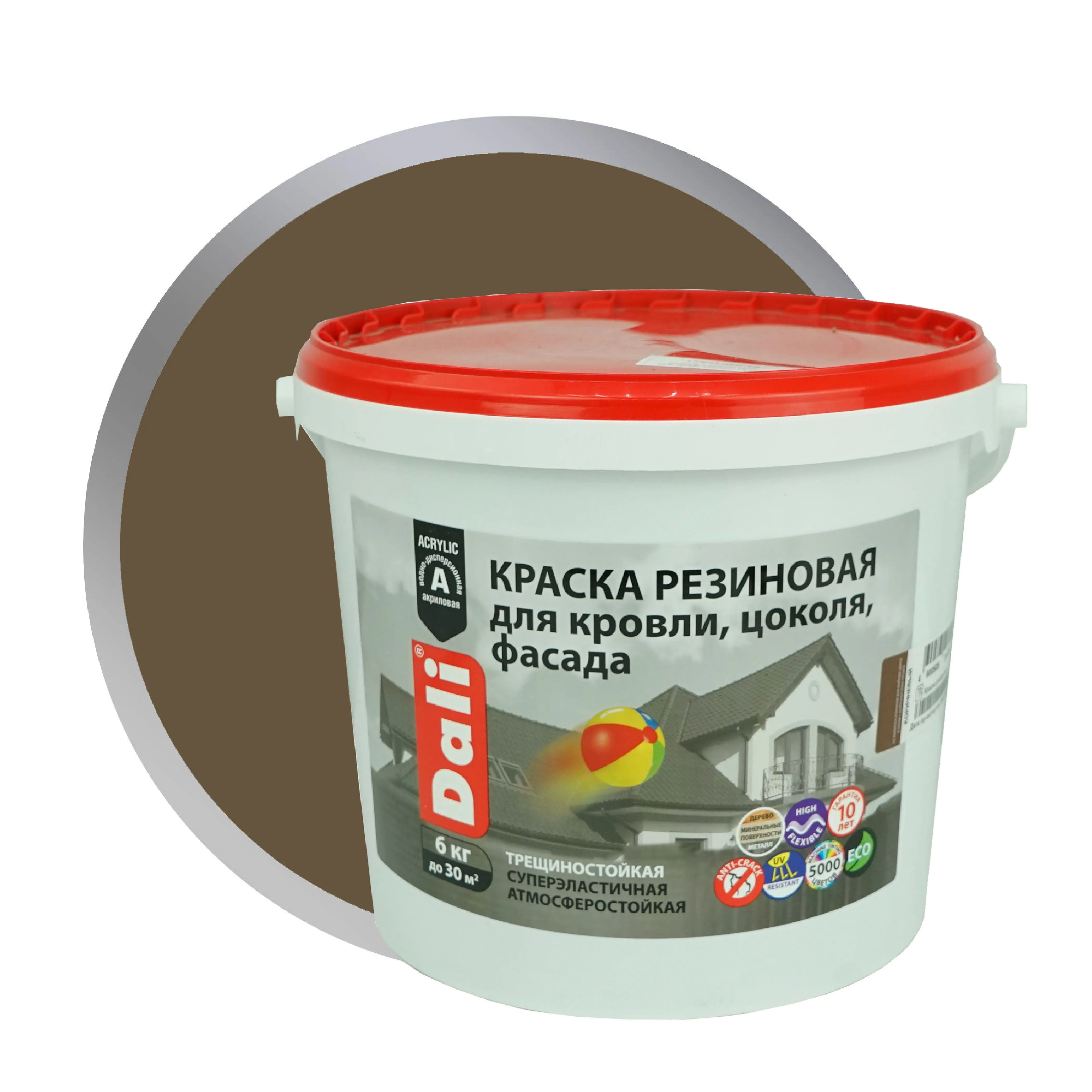 Краска резиновая DALI для кровли, цоколя, фасада коричневая 6 кг