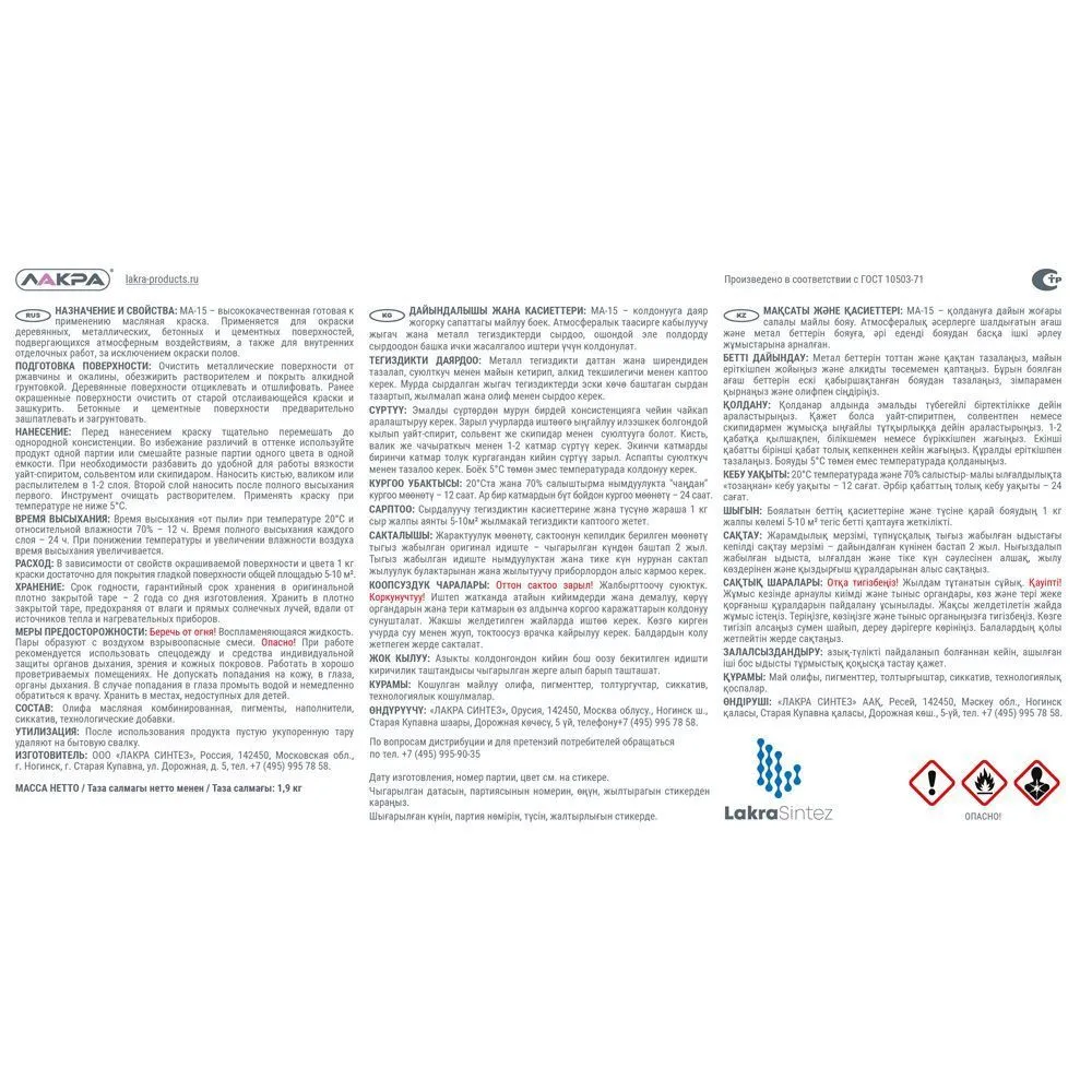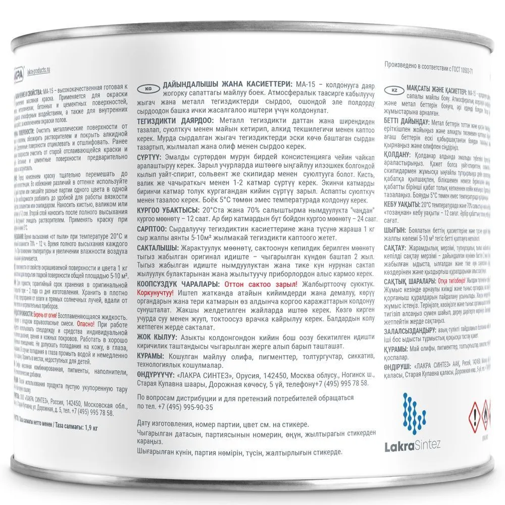 Краска МА-15 Лакра сурик железный используется, для антикоррозионной защиты метала. Суриком МА-15 окрашиваются металлические гаражи, радиаторы отопления, трубы и листовое железо подверженное атмосферным воздействиям.