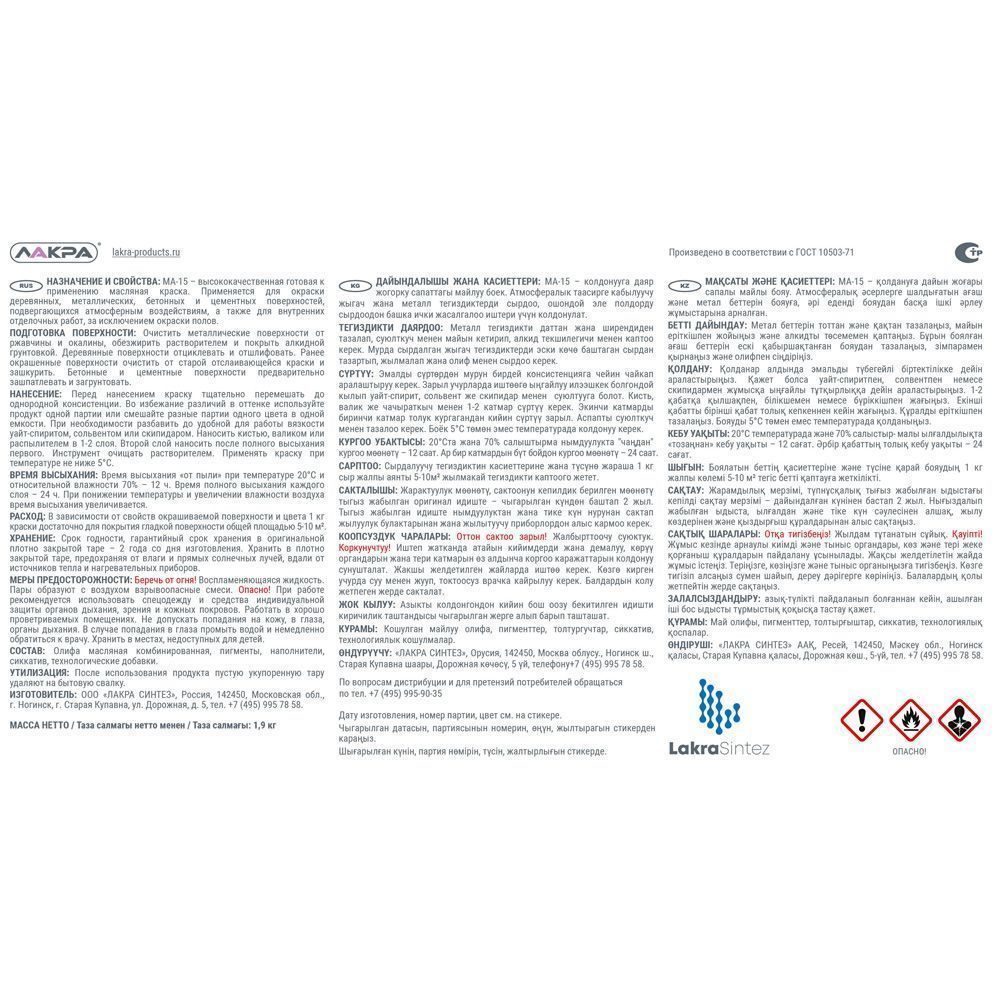 Используется как для внутренних, так и для наружных работ. Предназначена для окраски деревянных и металлических поверхностей, подвергающихся атмосферным воздействиям, а также для внутренних отделочных работ за исключением окраски полов. Преимущество: Не теряет цвет под действием световых лучей. Образует покрытие, устойчивое к прямому воздействию воды, атмосферных осадков, различных моющих средств.