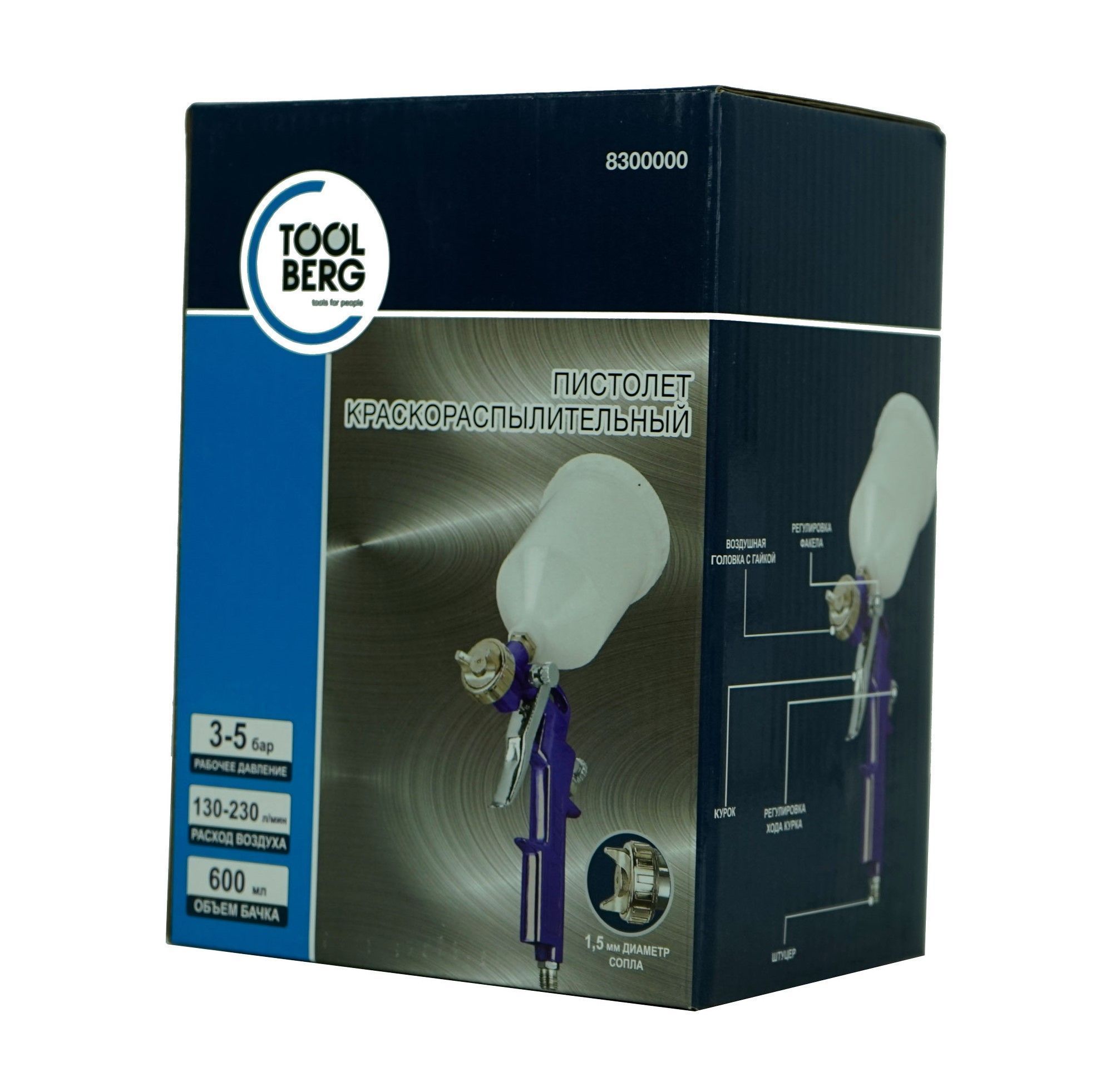 Пистолет (Т4Р) краскораспылительный, 1,5мм, 600мл (8300000).