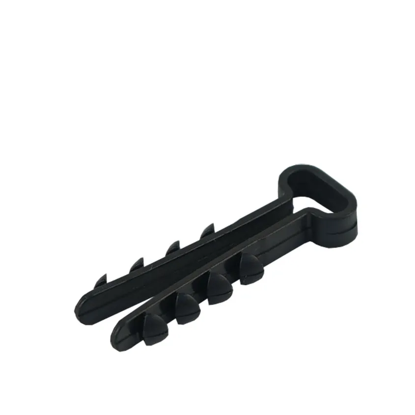 Дюбель-хомут прямоугольный предназначен для крепления провода, пучков проводов, гибких и жестких труб. Изготавливается из полиамидного пластика и выдерживает температуру от -40 до +70° С. Крепление рассчитано на установку практически в любой материал достаточной толщины: бетон, кирпич, дерево, ДСП, фанеру, газобетон.