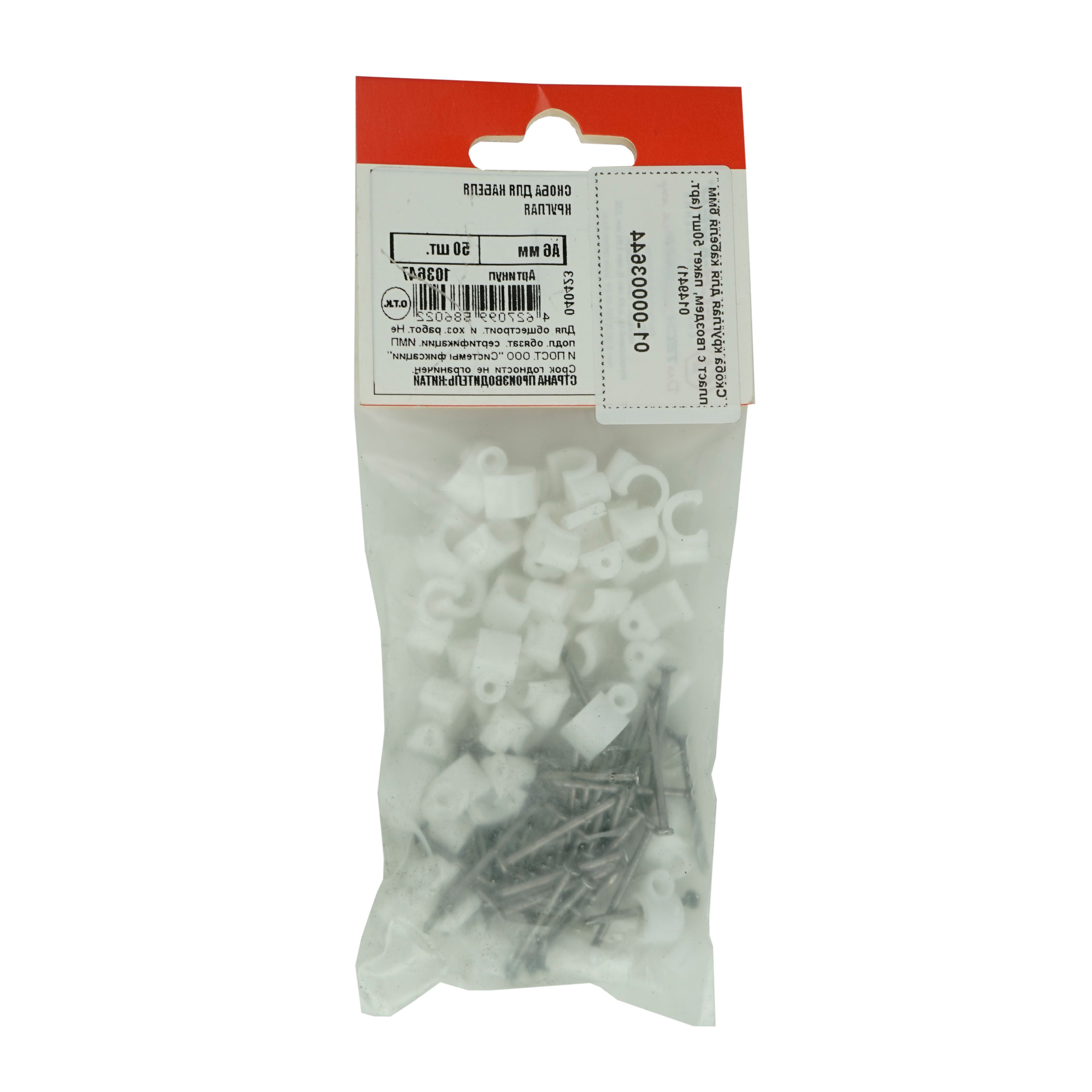 Скоба круглая для кабеля 6мм пласт с гвоздем, пакет 50шт (арт. 014941)