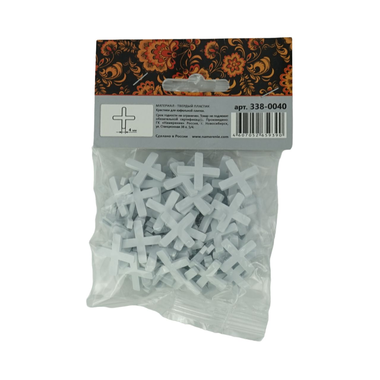 Крестики (DECOR) для кафельной плитки - четырехконечные полнотелые пластиковые крестики, толщиной ребра 4 мм, белого цвета, в упаковке по 100 шт, используются для ровной укладки облицовочной плитки на горизонтальные и вертикальные поверхности.
