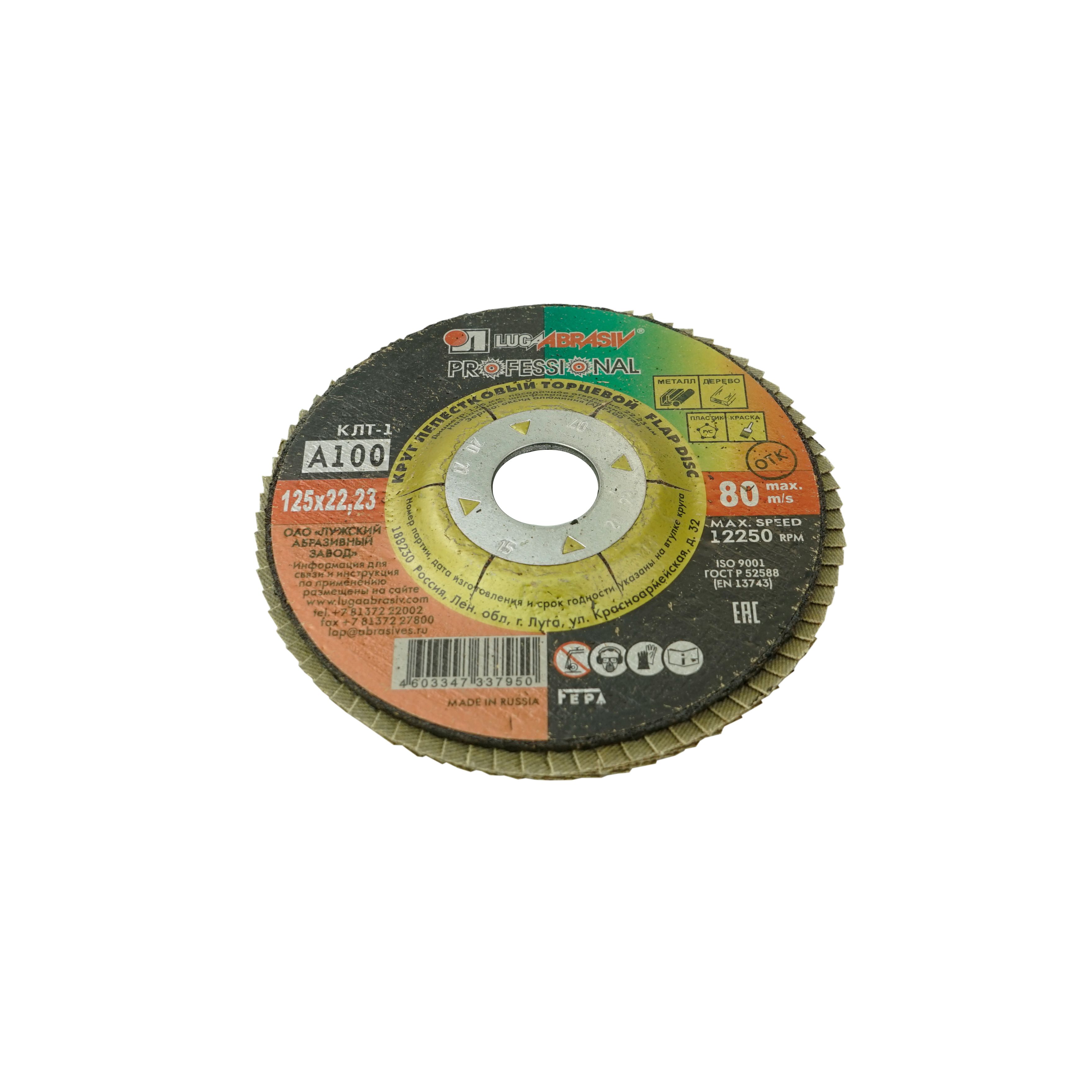 Круг (Луга) лепестковый, торцевой, Р100 – сменный элемент для угловых шлифовальных машин.