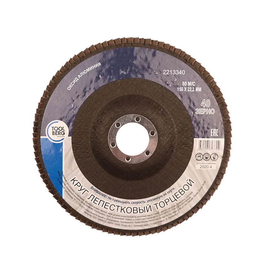 Круг (Т4Р) лепестковый, торцевой, Р40, 150х22мм - сменный элемент для угловых шлифовальных машин.