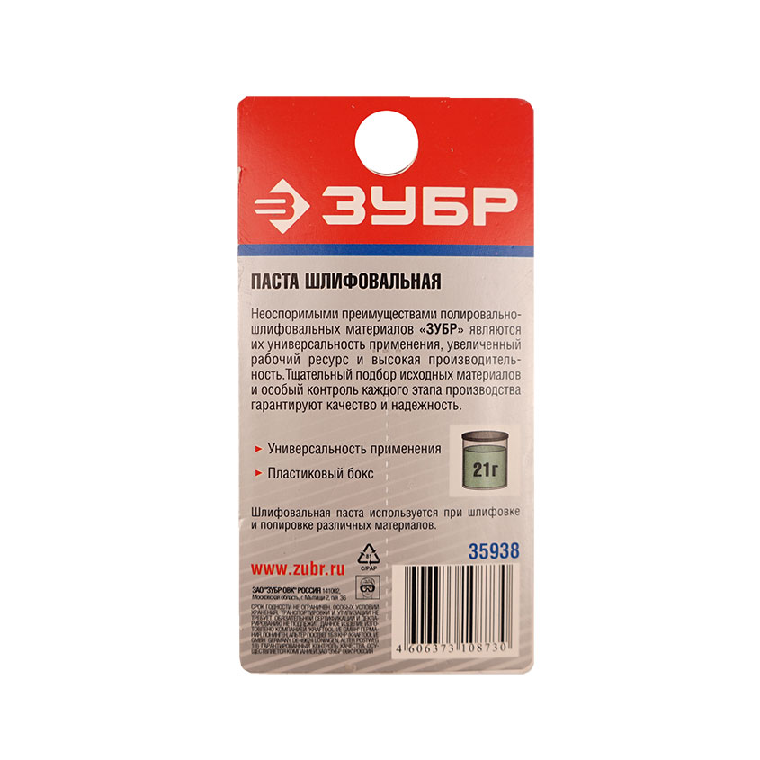 Паста шлифовальная Зубр используется при шлифовке и полировке различных материалов.
