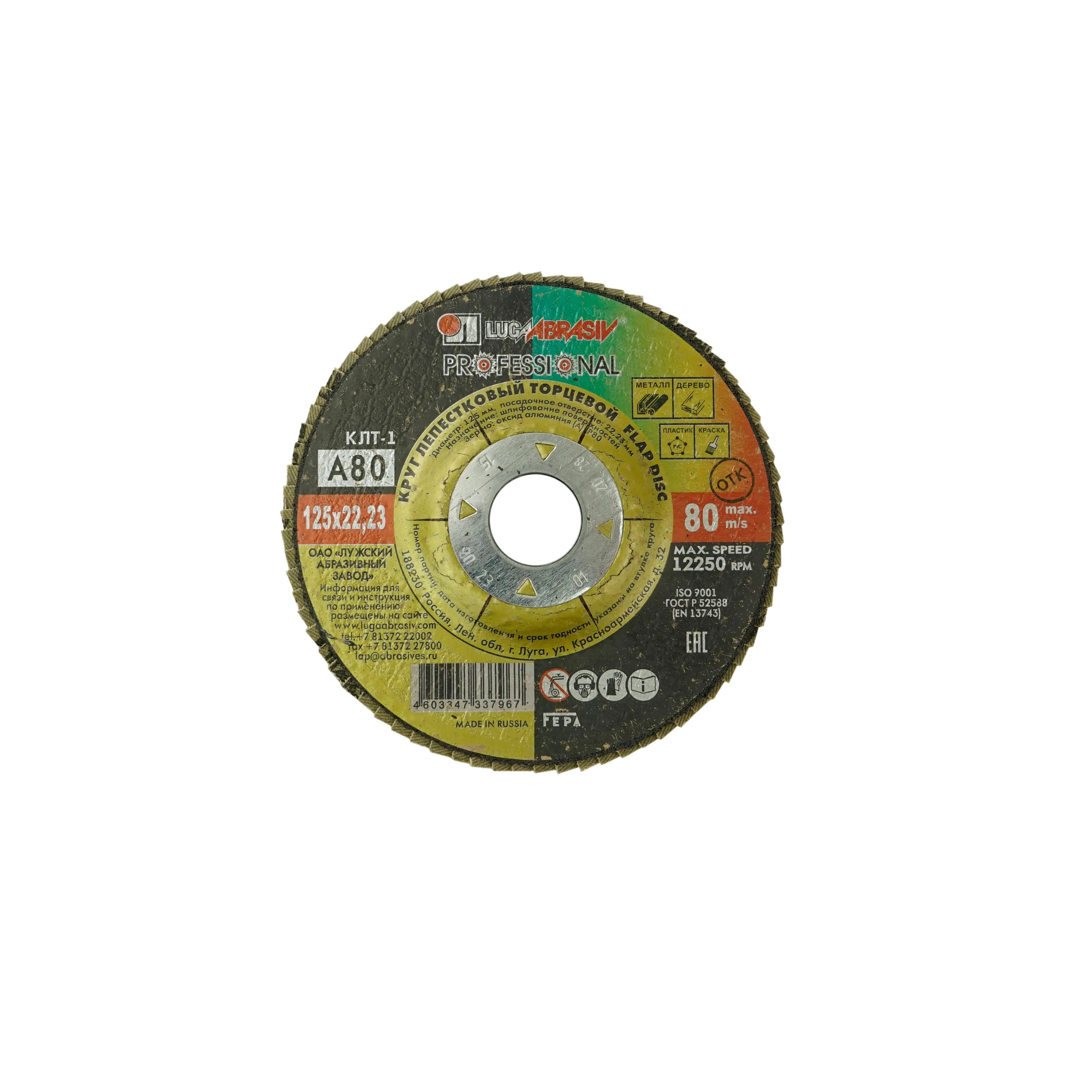 Круг (Луга) лепестковый, торцевой, Р60 – сменный элемент для угловых шлифовальных машин.