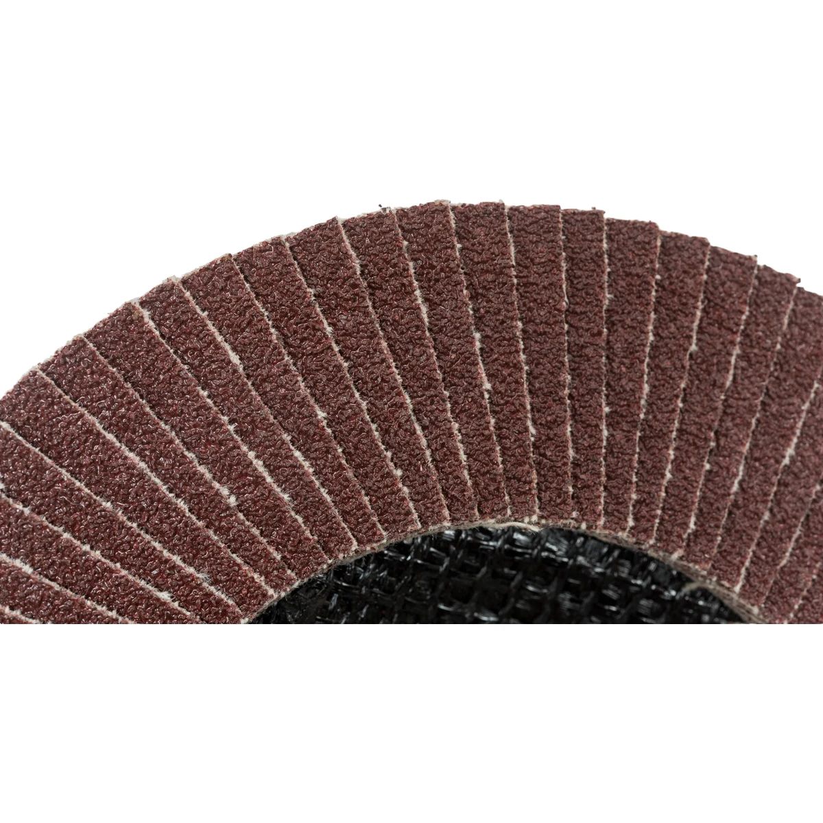Круг лепестковый торцевой Vertextools устанавливается на стационарные станки или специальные электроинструменты и применяется для обработки различных поверхностей. Он помогает подготовить поверхность под покраску, удалить ржавчину и оскалины, зачистить швы и кромки. Круг шлифовальный справляется с металлом, деревом, пластмассой и другими материалами. Представленная модель состоит из прямоугольных шлифовальных отрезков, которые закреплены внахлест на подложке из стекловолокна. Такая конструкция позволяет качественно отшлифовать не только плоские, но и вогнутые поверхности.