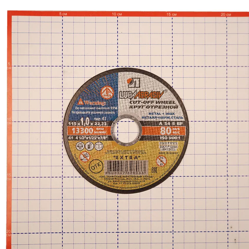 Круг отрезной абразивный ЛУГА по металлу 115х1х22 - расходный сменный элемент для УШМ изготовлен из электрокорунда нормального марки 14А на основе бакелитовой связки с армированием.
