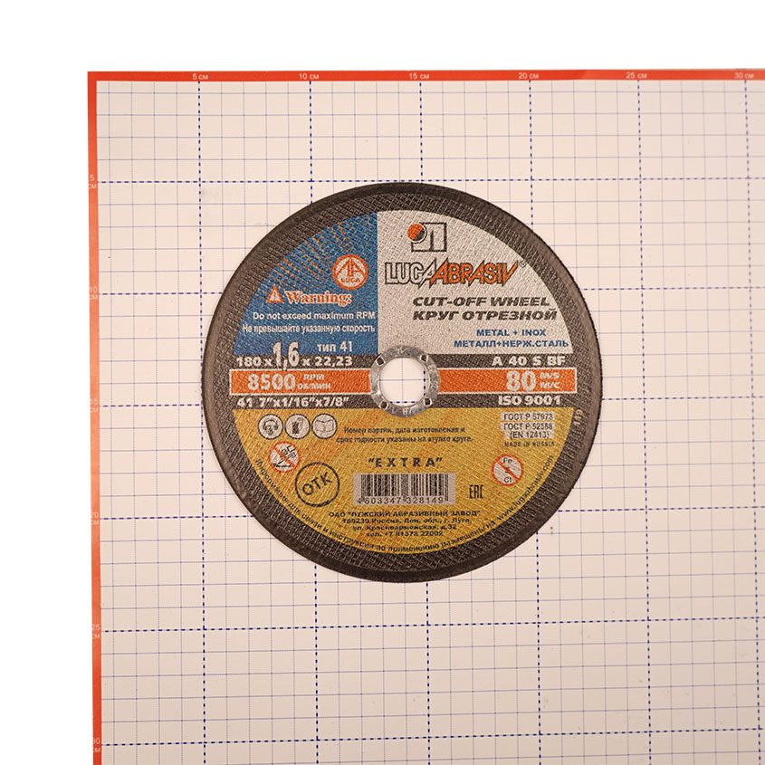 Круг отрезной абразивный ЛУГА по металлу 180х1,6х22 - расходный сменный элемент для УШМ изготовлен из электрокорунда нормального марки 14А на основе бакелитовой связки с армированием.