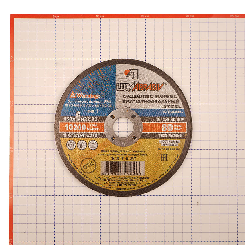 Круг зачистной абразивный (Луга) 150х6х22 - сменный элемент для угловых шлифовальных машин. Круг зачистной по металллу Луга позволяет придать изделию обработанный вид и четко контролировать толщину среза. Для получения изделий более высокого качества, необходимо использовать дополнительно шлифовальные круги.