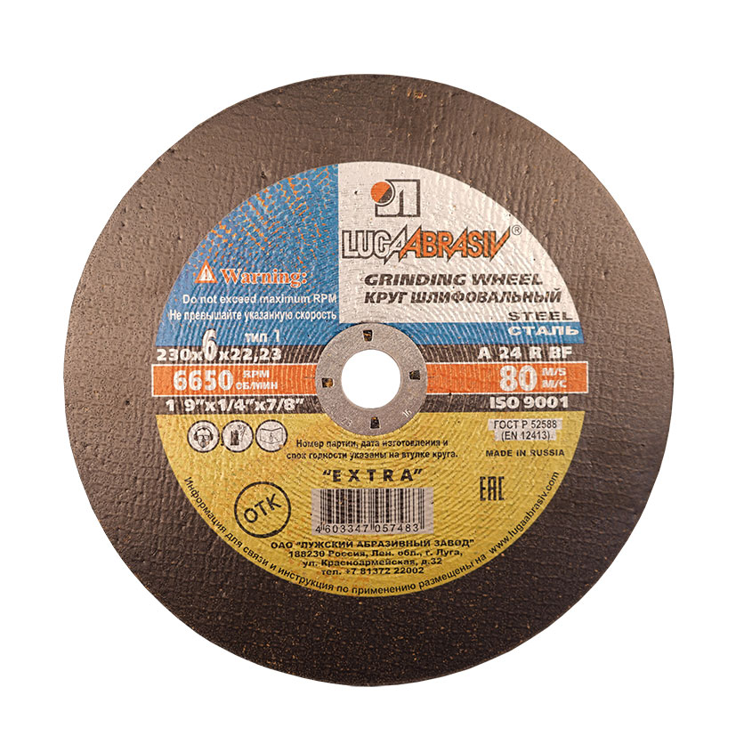Круг зачистной абразивный (Луга) 230х6х22,2мм цена - купить в Барнауле, Бийске. Размеры, характеристики, фото в интернет-магазине.