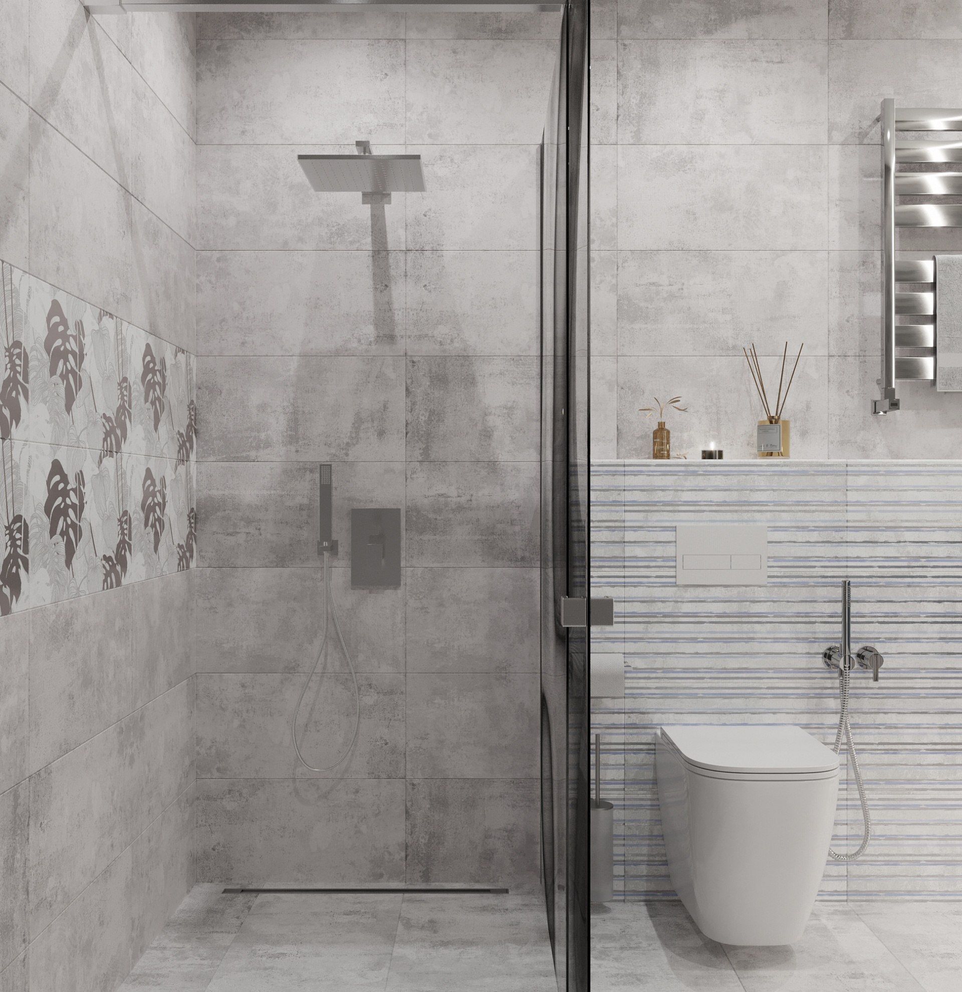 Коллекция Куба бренда Axima лаконична и самодостаточна в своём исполнении. Матовая поверхность отделочного материала имитирует светло-серый и тёмно-серый бетон. Сделать дизайн помещения более разнообразным и лёгким позволяют вставки с бликующими листьями, либо вставки с параллельными полосами с неровными краями. Пожалуй, самым ценным элементом в составе коллекции является панно из трёх плиток с изображением тропических растений, выполненное в благородных травяных оттенках. Рисунок панно изображён таким образом, что плитки могут состыковываться бесконечно, следовательно ими можно выложить не только отдельное панно, но и целую зону.