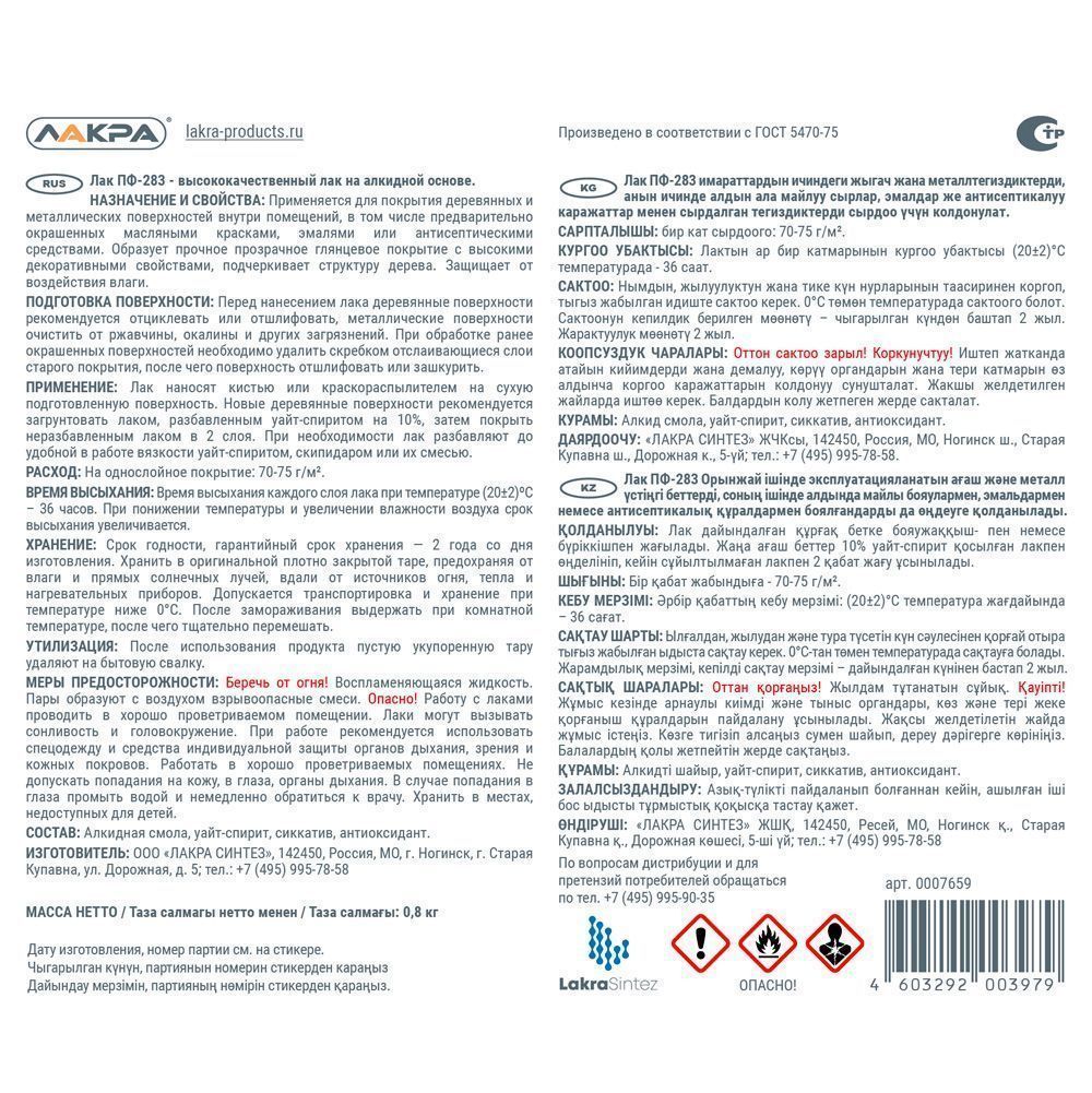Высококачественный лак на алкидной основе.