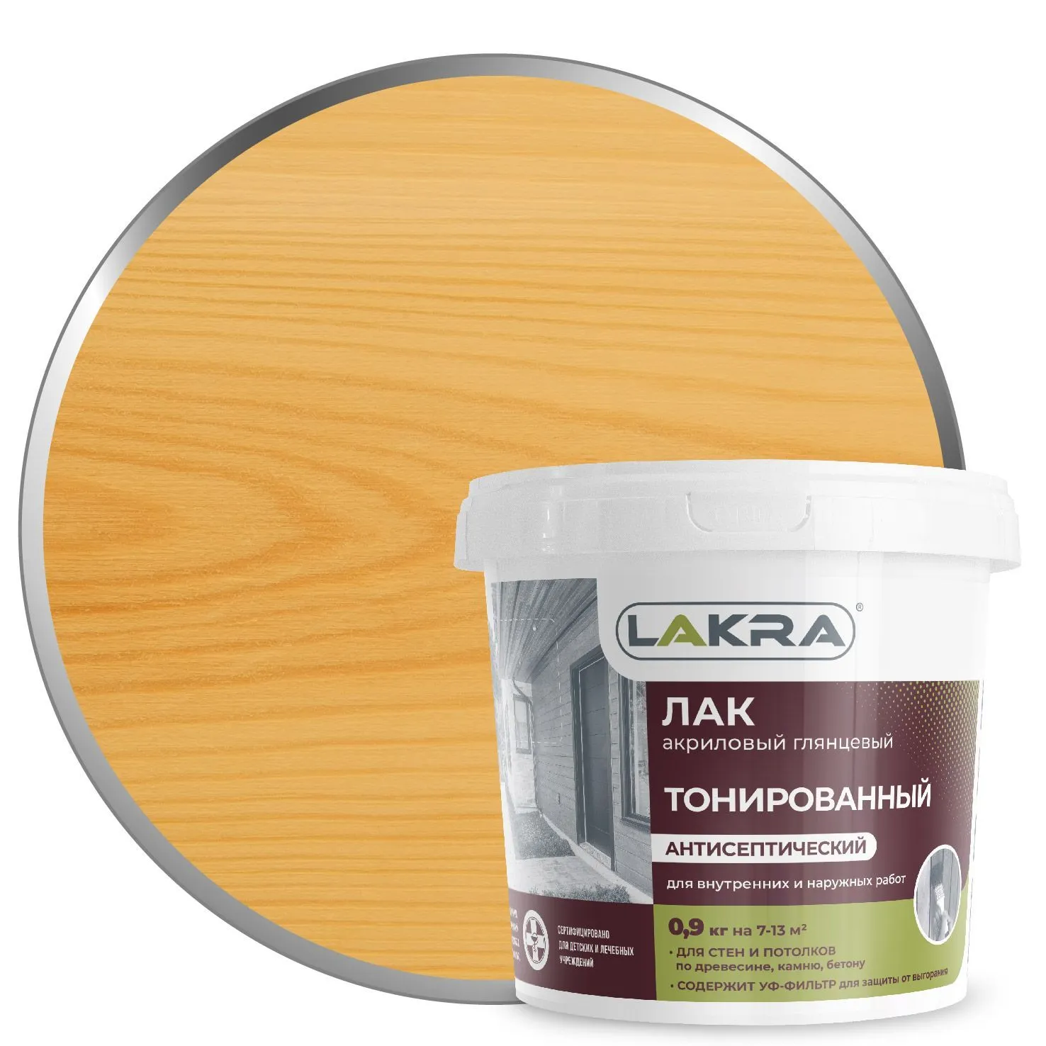 Лак воднодисперсионный тонированный Лакра сосна 0,9кг цена - купить в Барнауле, Бийске. Размеры, характеристики, фото в интернет-магазине.
