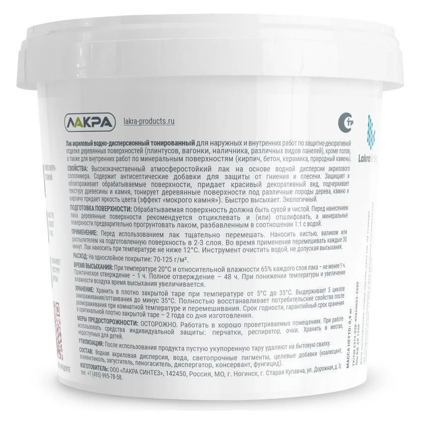 Лак в/д лакра, тонированный, орегон (0,9 кг)