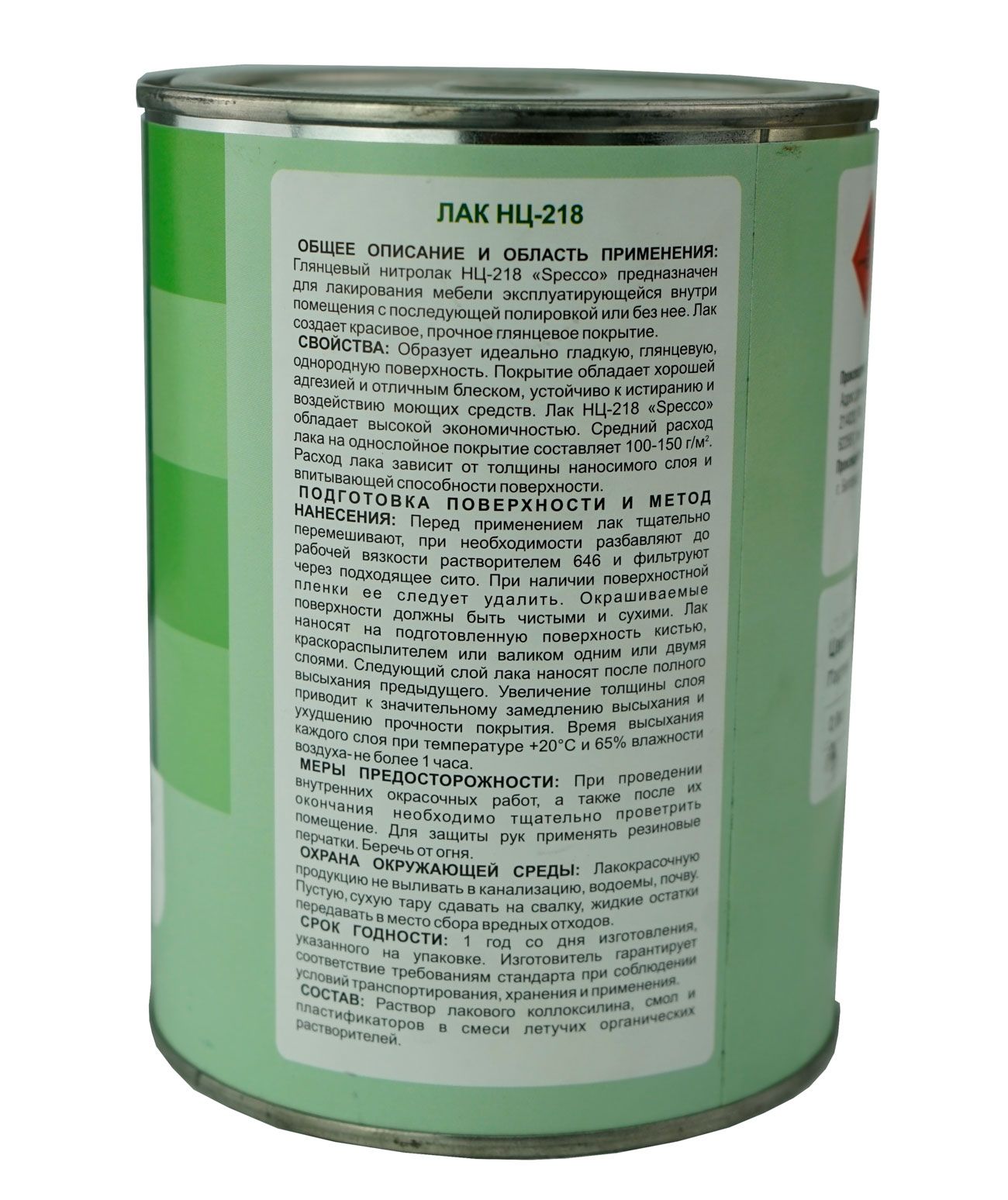 Лак НЦ-218 Specco глянцевый 0,8кг цена - купить в Барнауле, Бийске. Размеры, характеристики, фото в интернет-магазине.