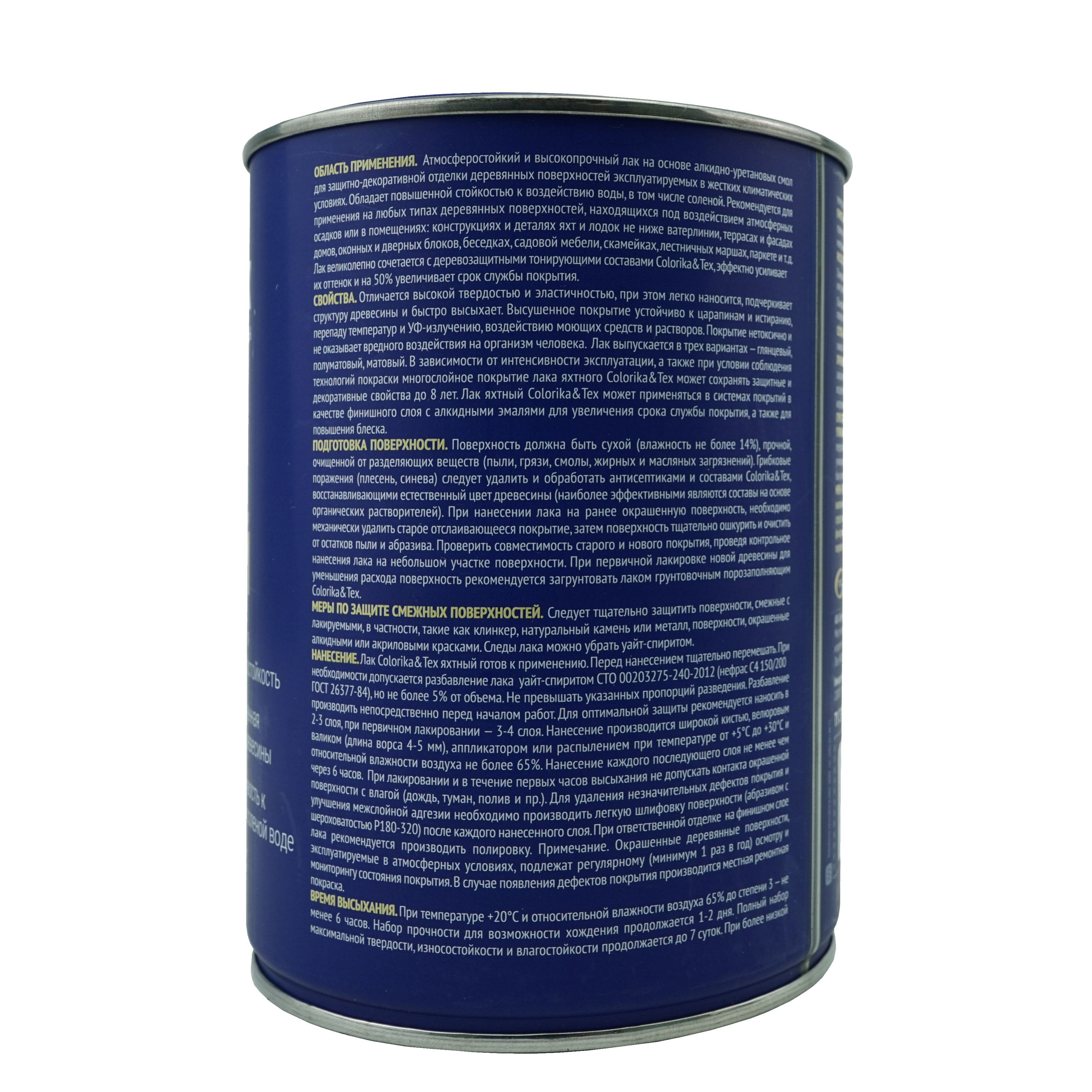 Высококачественный быстросохнущий прозрачный яхтный лак от бренда Colorika&Tex на алкидно-уретановой основе.