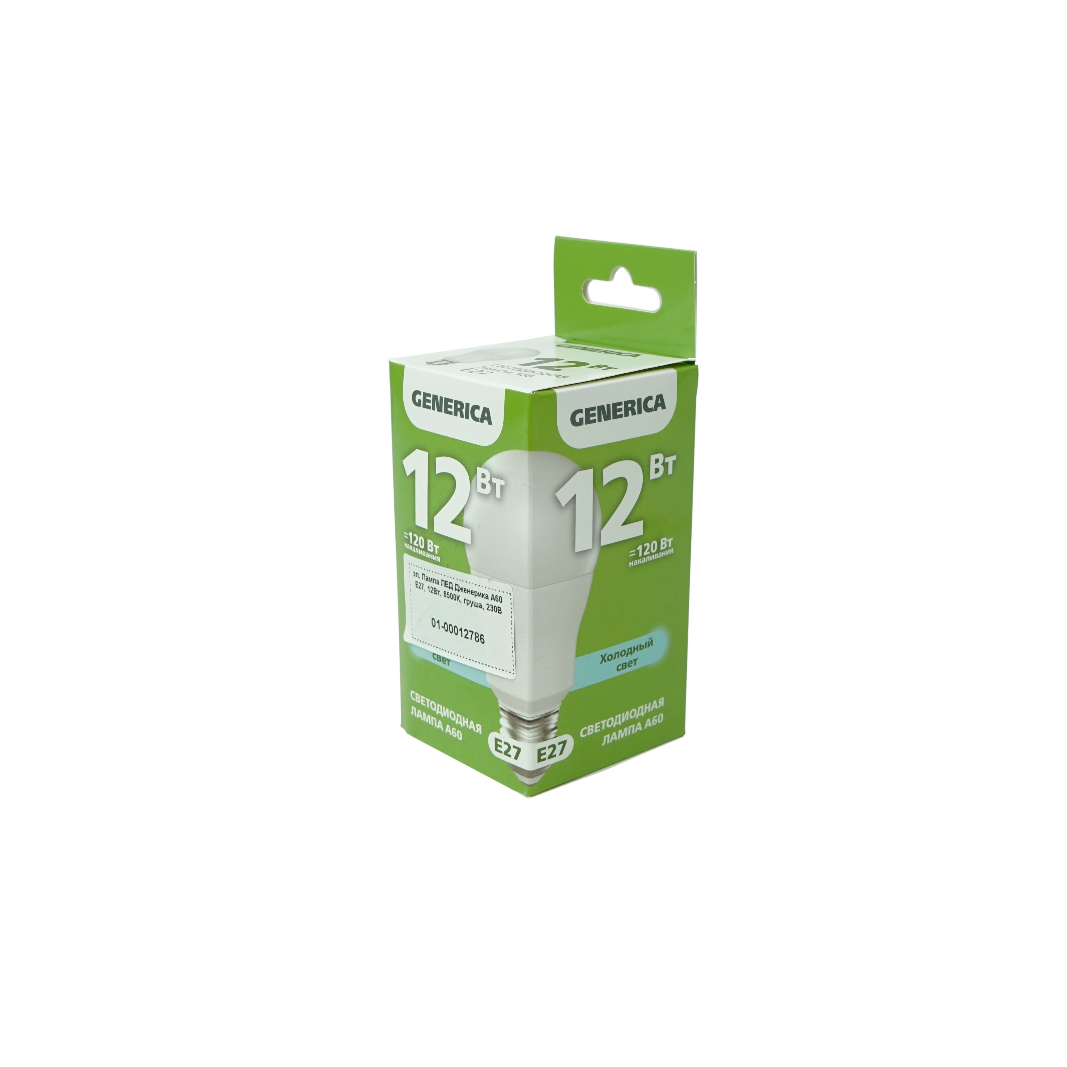 Лампа светодиодная (Generica)А60, Е27, 12Вт, 6500К, 1200лм, груша, холодный свет цена - купить в Барнауле, Бийске. Размеры, характеристики, фото в интернет-магазине.