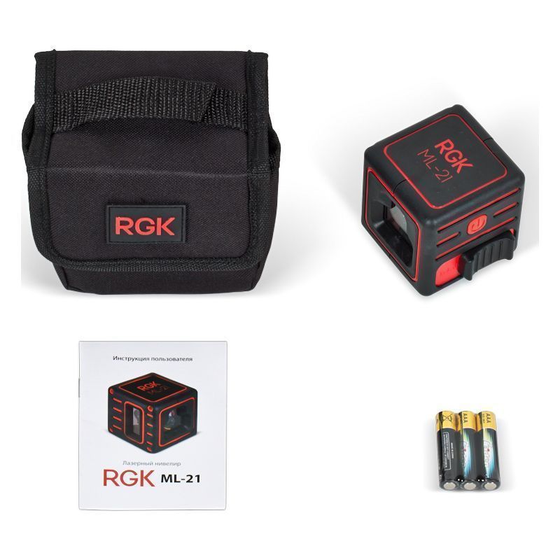- На корпусе есть резьба 1/4 " под штатив. Установка лазерного нивелира RGK ML-21 на треногу позволит проецировать лучи на заданной высоте, поворачивать модель вокруг своей оси или менять её наклон без перестановки на другое место.