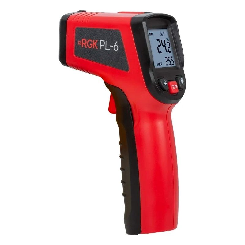 Пирометр RGK PL-6 используется для получения значений температуры трубопроводов, батарей, котлов, двигателей, электропроводки и т.д.