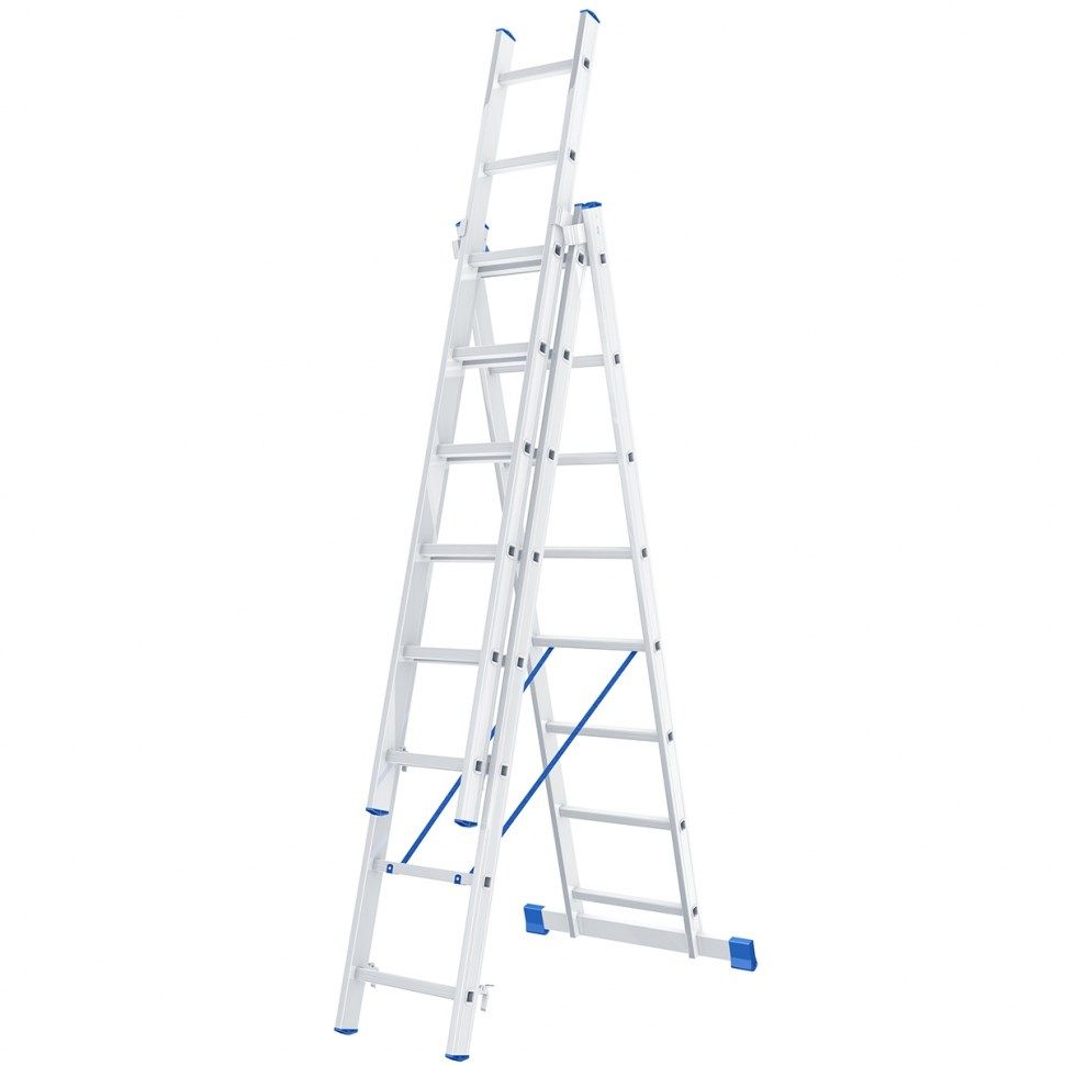 Лестница секционная алюминиевая РемоКолор – универсальная лестница, которая может использоваться как стремянка, как раздвижная лестница и как приставная односекционная.