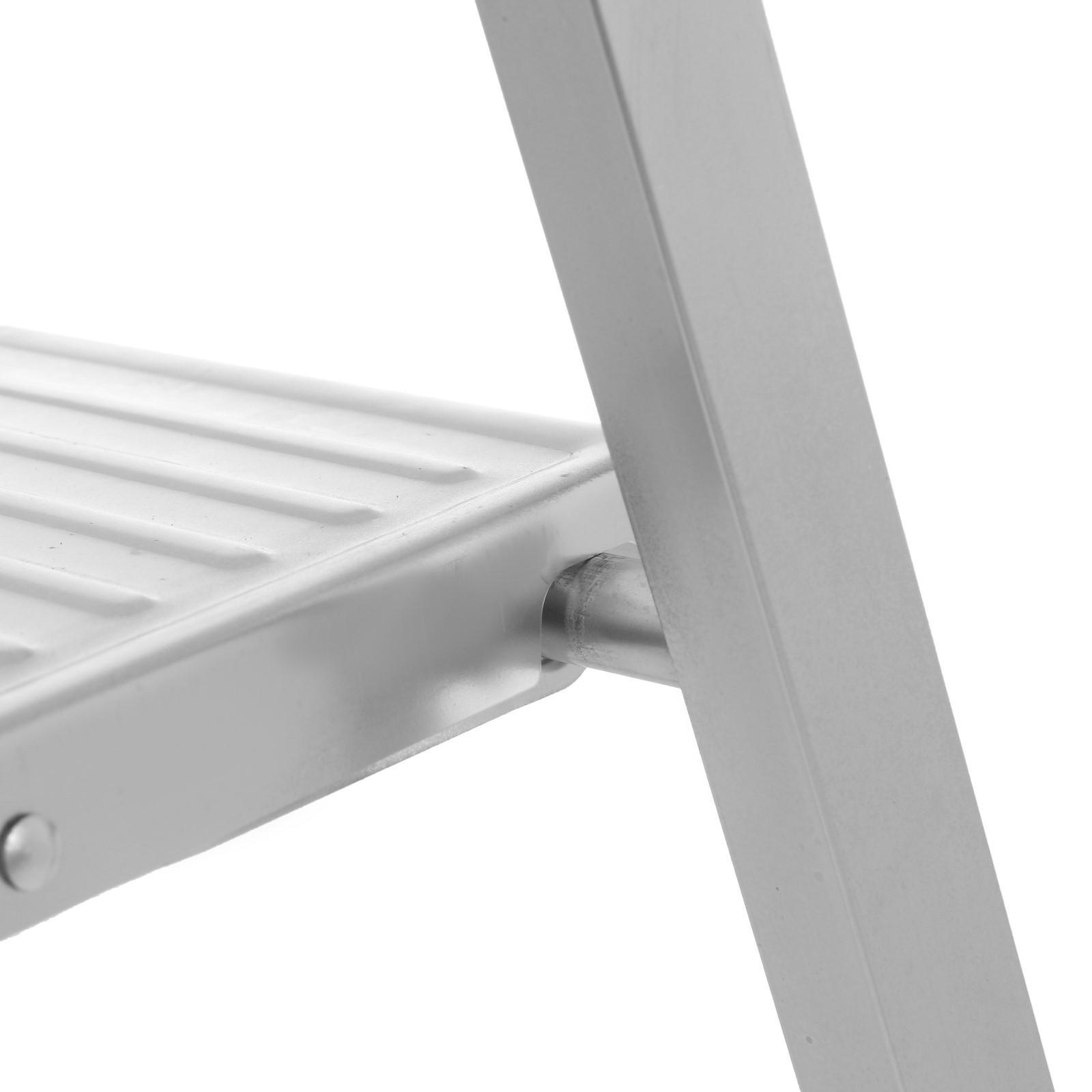 - В сложенном состоянии стремянка очень компактная и занимает мало места, что актуально при использовании в быту.