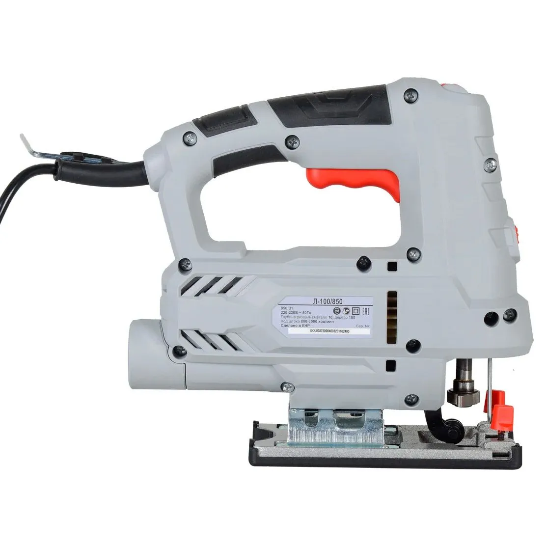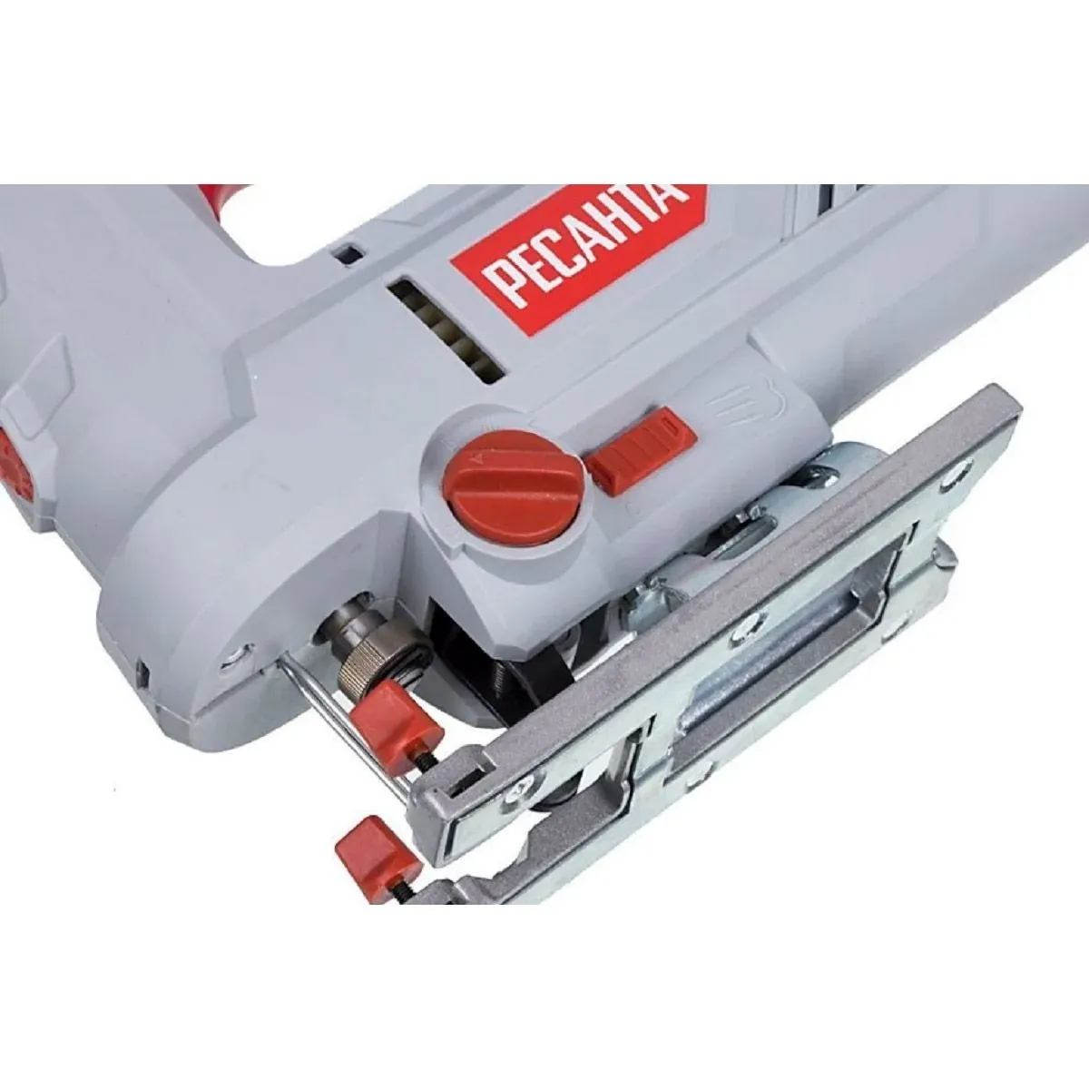 Электрический лобзик предлагает широкий выбор опций, которые обеспечивают высокое качество пиления. Маятниковый ход повышает эффективность работы при выполнении грубых резов. Лазерный указатель дает возможность выполнять прямые пропилы. Наличие бокового ограничителя обеспечивает параллельность штока базовой кромке основы. Благодаря возможности регулировать угол наклона подошвы, можно выполнять пиление под любым углом. Ход штока варьируется в диапазоне 800-3000 ход/мин. В зависимости от типа заготовки можно самостоятельно подбирать оптимальную скорость. Быстрозажимное крепление позволяет менять оснастку без особой траты времени. Пластиковый корпус имеет удобную эргономичную форму с расположенной сверху широкой ручкой и размещенным под ней выключателем. Устройство оснащено защитой от случайного включения мотора. Лобзик имеет подсветку, которая необходима для улучшения видимости в условиях плохого освещения. К установке можно подключить пылесос, который будет собирать опилки и пыль во время рабочего процесса.