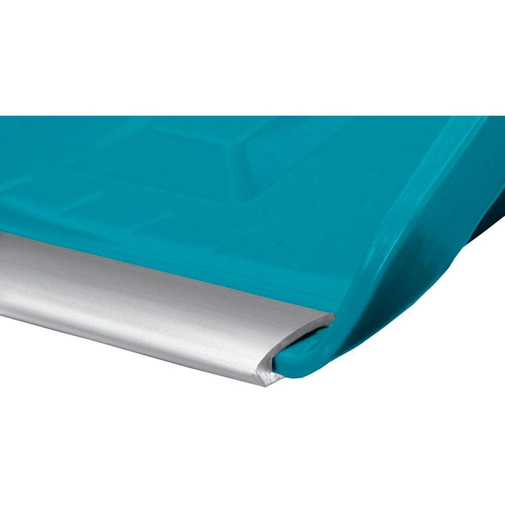 - Прочность и долговечность инструмента за счёт использования пластика с алюминиевой планкой. Планка защищает пластик от повреждений и продлевает срок службы лопаты;