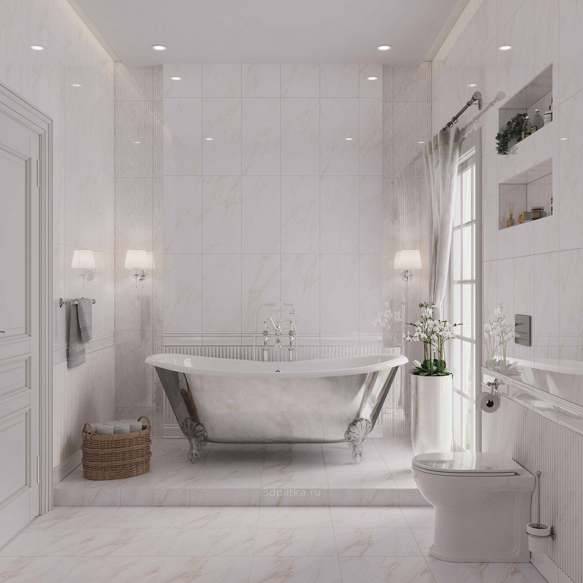Коллекция Луизиана бренда Axima пленит своим изяществом. Базовая плитка воссоздаёт серые разводы мрамора с бежевыми прожилками на супербелой глазури. Органично дополняют коллекцию декоративные элементы: это могут быть вставки с рельефными бусинами в стиле ар-деко или панно, складывающееся из двух плиток с нотками прованса. Панно может превратиться в отдельную зону по желанию заказчика — рисунок устроен так, что плитки пристыковываются друг к другу с любой из сторон.
