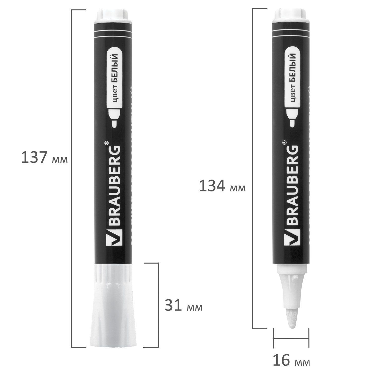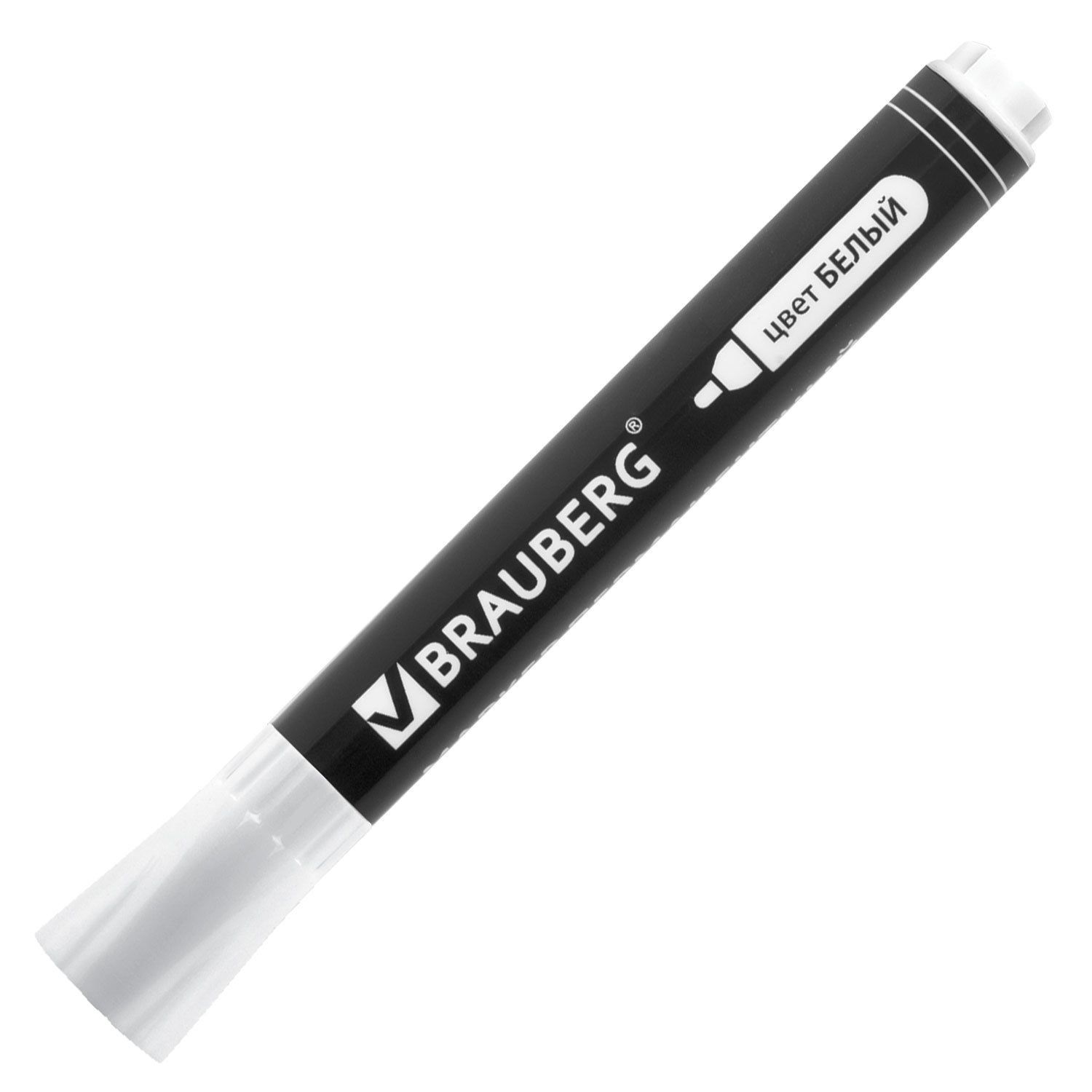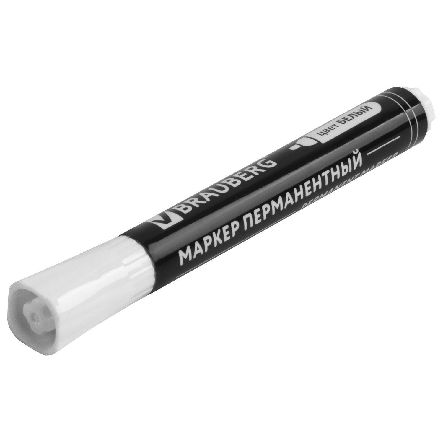 Маркер перманентный BRAUBERG «W5» белого цвета обладает круглой формой корпуса из пластика, диаметр которого 16 мм. Толщина линии письма — 5 мм. Основа чернил — водная. Фетровый наконечник обеспечивает экономный расход чернил. Изделие не перезаправляется. Плотно закрывается колпачком, что предотвращает высыхание наконечника и чернил. Цвет колпачка соответствует цвету чернил.