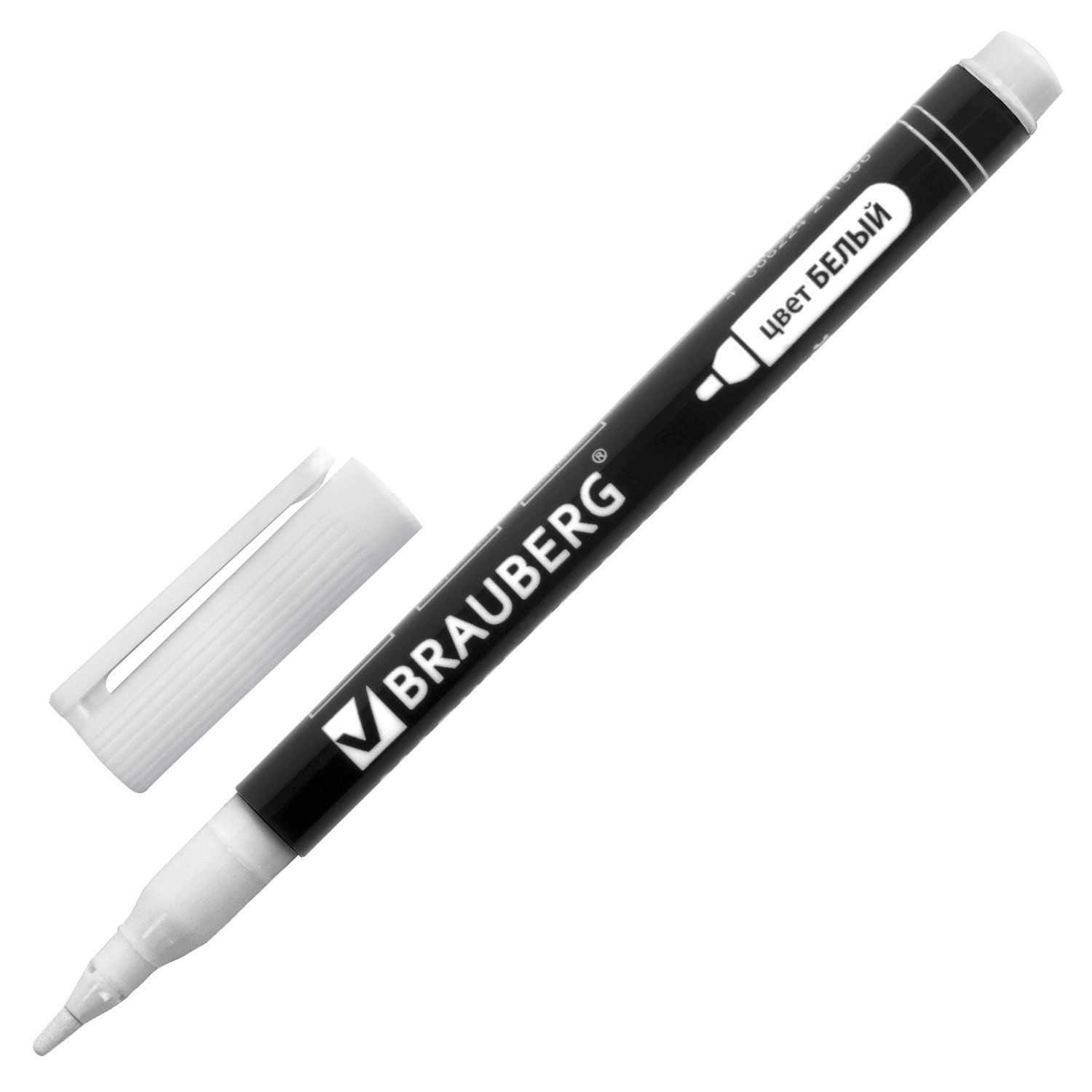 Маркер перманентный BRAUBERG «W2» белого цвета обладает круглой формой корпуса из пластика, диаметр которого 9 мм. Толщина линии письма — 2 мм. Основа чернил — водная. Фетровый наконечник обеспечивает экономный расход чернил. Изделие не перезаправляется. Плотно закрывается колпачком, что предотвращает высыхание наконечника и чернил. Цвет колпачка соответствует цвету чернил.