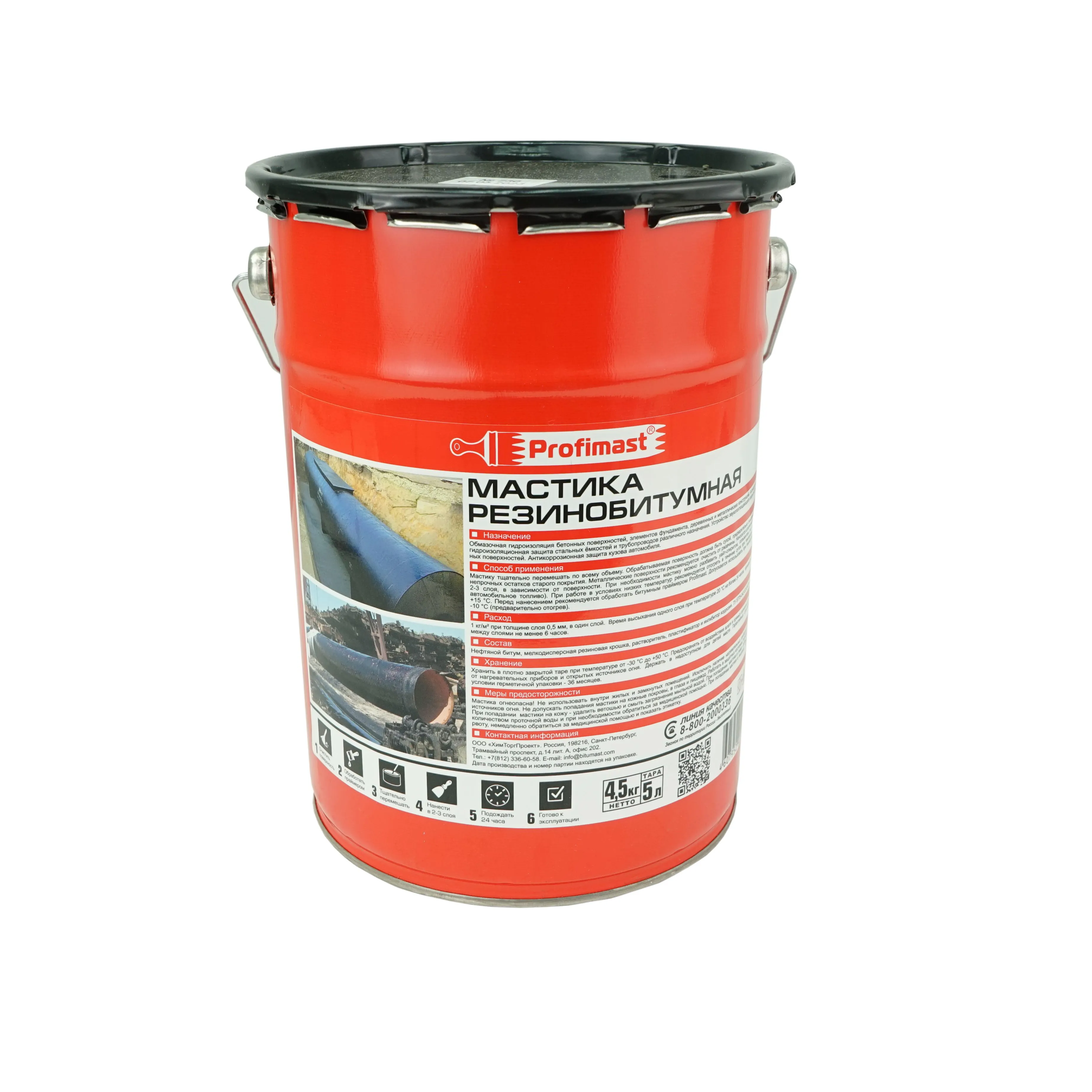 Мастика резинобитумная (Profimast) 5,0л (4,5кг) цена - купить в Барнауле, Бийске. Размеры, характеристики, фото в интернет-магазине.