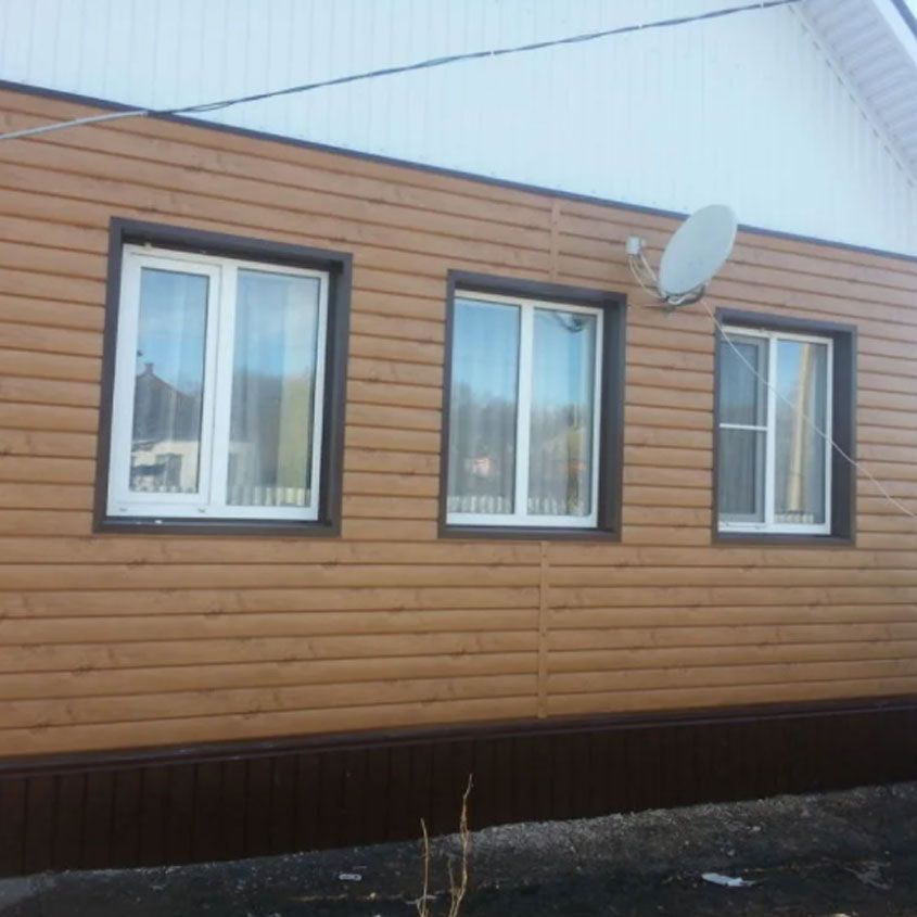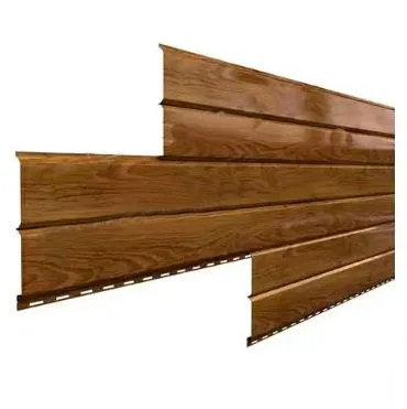 Сайдинг Lбрус. Канавка на сайдинге напоминает форму известной горы, а буква «L» означает Light, подчеркивая преимущество стальной имитации бруса перед деревянным аналогом по весу и легкости монтажа. Применяется как облицовка стен (в вертикальном или горизонтальном расположении) и для подшивки карнизных и фронтонных свесов, при комплектации кровель.