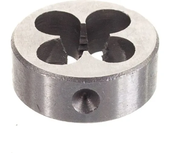 Плашка предназначена для нарезания или калибрования наружной метрической резьбы в углеродистых и легированных сталях с пределом прочности до 800Н/мм2, цветных металлах, пластике.