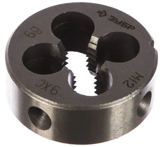 Плашка предназначена для нарезания или калибрования наружной метрической резьбы в углеродистых и легированных сталях с пределом прочности до 800Н/мм2, цветных металлах, пластике.