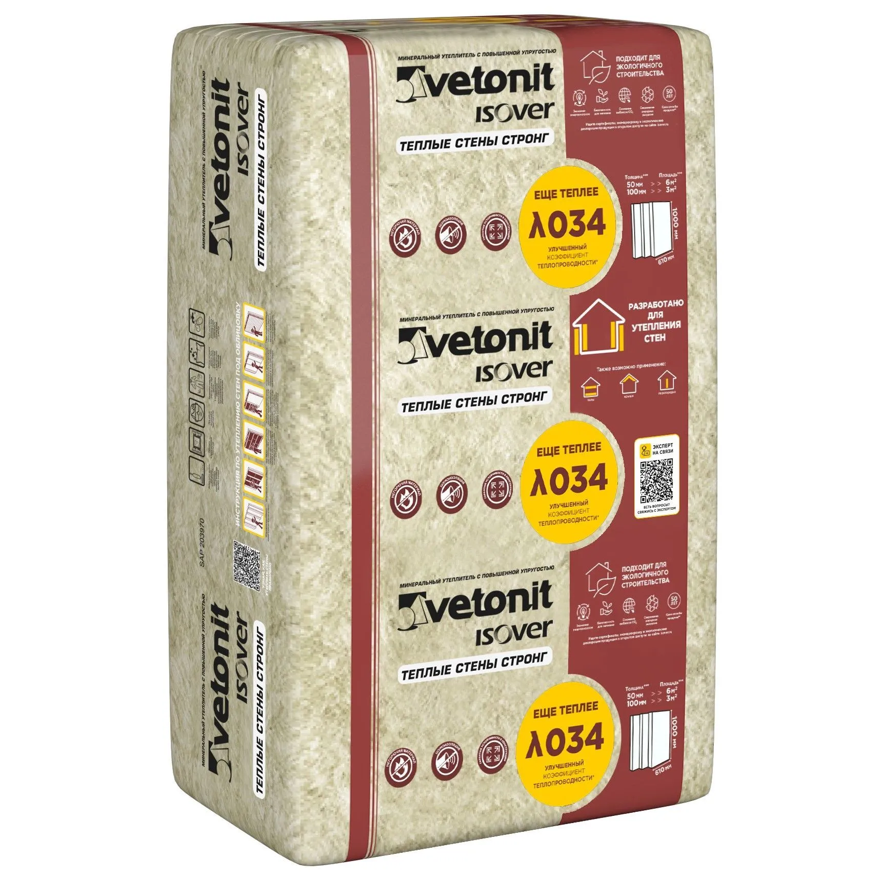 Минеральная плита Vetonit теплые стены стронг 1000х610х100 мм, 5 штук в упаковке