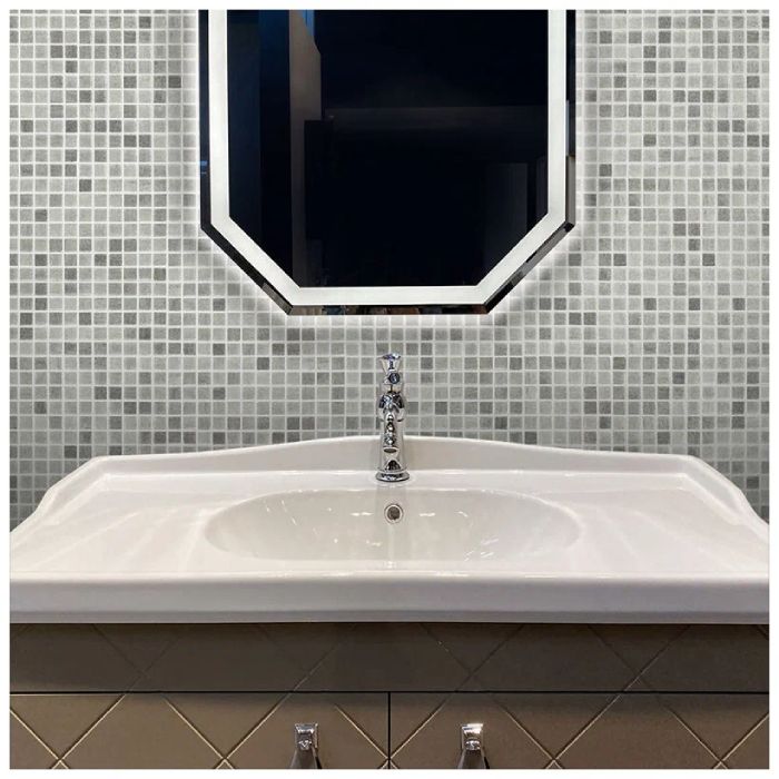 Стеклянная мозайка имеет форму чипов, которая позволяет создавать самые разнообразные композиции для оформления стен и поверхностей. Из плитки можно собирать как простые геометрические узоры, так и сложные мозаичные картины.
