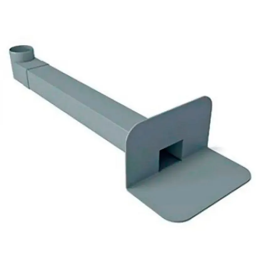 ПВХ воронка парапетная 65х100 мм длиной 550 мм с отводом и листоуловителем ТЕХНОНИКОЛЬ – кровельная воронка для отвода воды через балконы и парапеты на плоской кровле. Воронка имеет квадратное сечение отводящей трубы и изготавливается из высококачественного поливинилхлорида, устойчивого к атмосферному воздействию и ультрафиолетовому излучению. Применяется совместно с ПВХ мембранами ТехноНИКОЛЬ. Приваривается к мембране гомогенно при помощи горячего воздуха. Имеет увеличенный фланец 454x244 мм и увеличенный выпуск длиной 550 мм. В состав комплекта входит Корпус воронки из ПВХ, угловой отвод из полипропилена, элемент жёсткости из оцинкованной стали и листоуловитель. Угловой отвод воронки 90° из полипропилена предназначен для соединения с водосточными трубами диаметром 100 мм. Элемент жёсткости из оцинкованной стали вставляется внутрь отводящей трубы парапетной воронки для усиления жёсткости конструкции. Листоуловитель позволяет предотвратить попадание веток, листьев и прочего мусора в ливневую канализацию. Поставляется как в комплекте с воронкой, так и отдельно от неё. Воронки не подвержены коррозии, имеют высокие механические свойства и могут использоваться во всех климатических районах согласно СП 131.13330.2012. Срок службы воронки составляет не менее 50 лет.