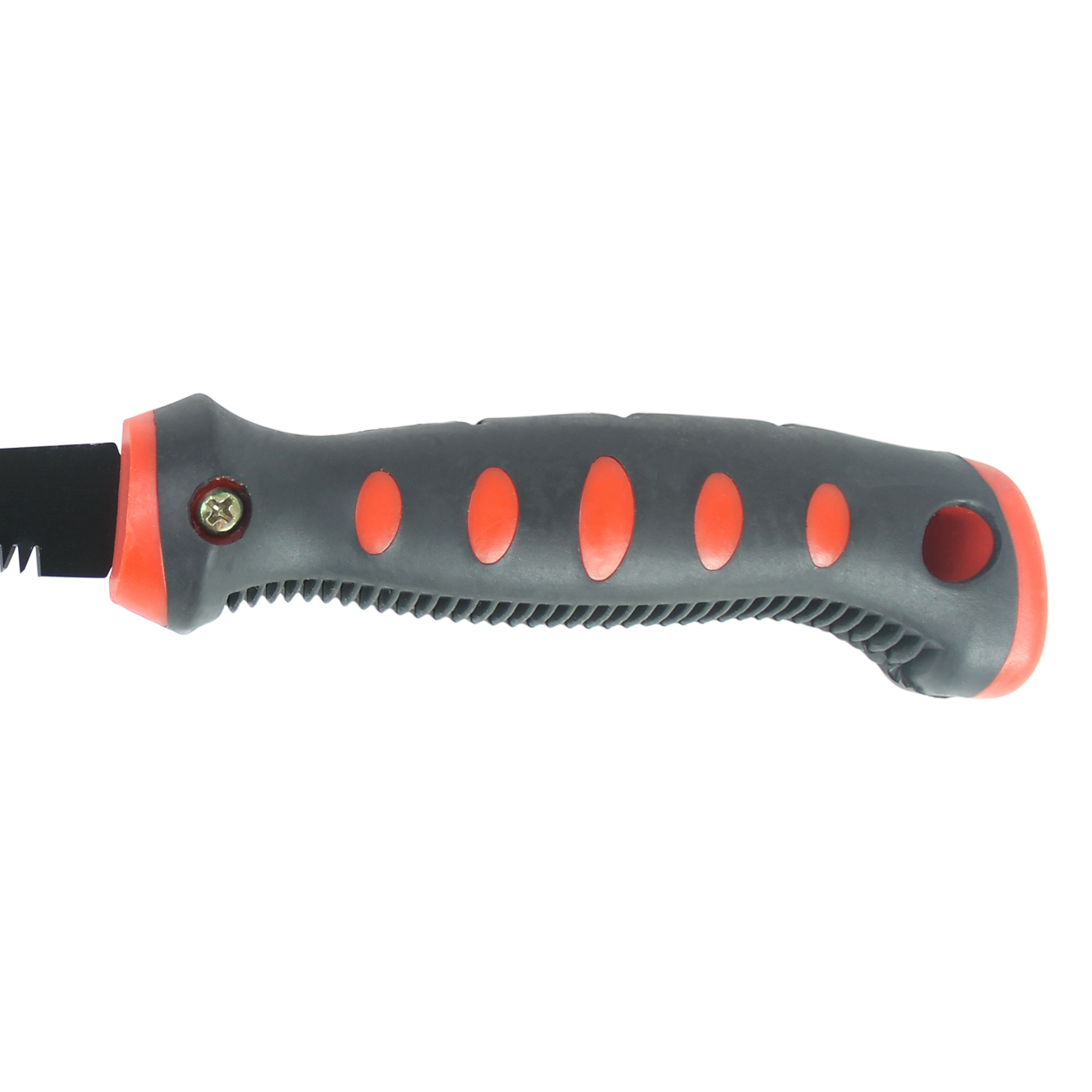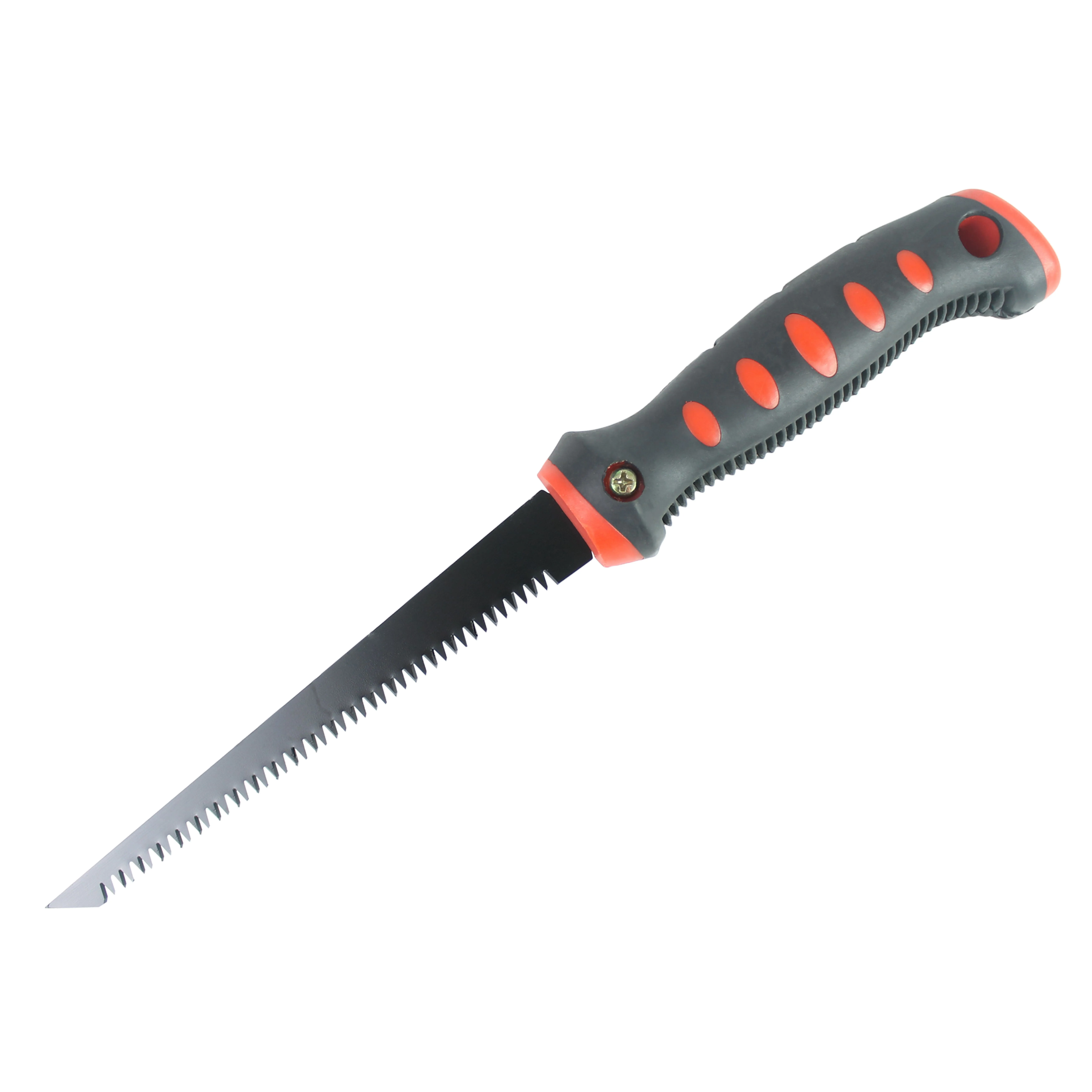 Ножовка (Т4Р) по гипсокартону, двухкомпонентная ручка. Полотно оснащено закаленным разведенным зубом с шагом 7 TPI (3,5 мм), позволяющим проводить ровный распил заготовок. Эргономичная двухкомпонентная рукоятка создает надежный захват, исключает проскальзывание инструмента в руке, что снижает утомляемость при работе и защищает руки от истирания.
