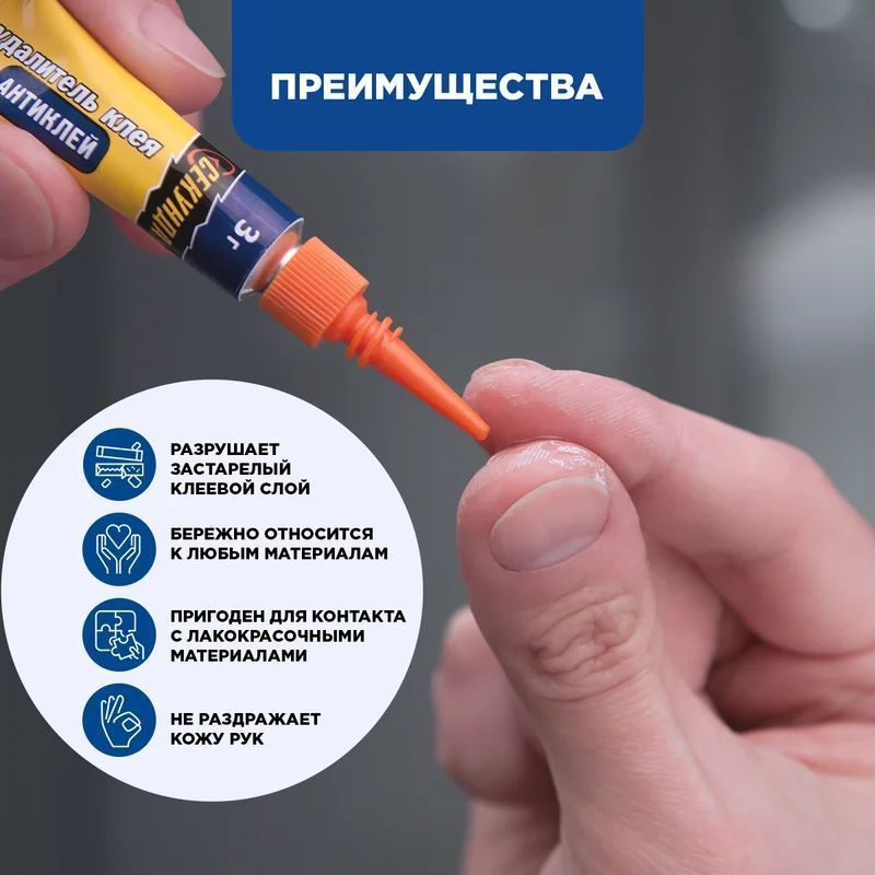 - Специальная формула позволяет разрушать даже застарелый клеевой слой практически любых видов, в том числе цианоакрилат.