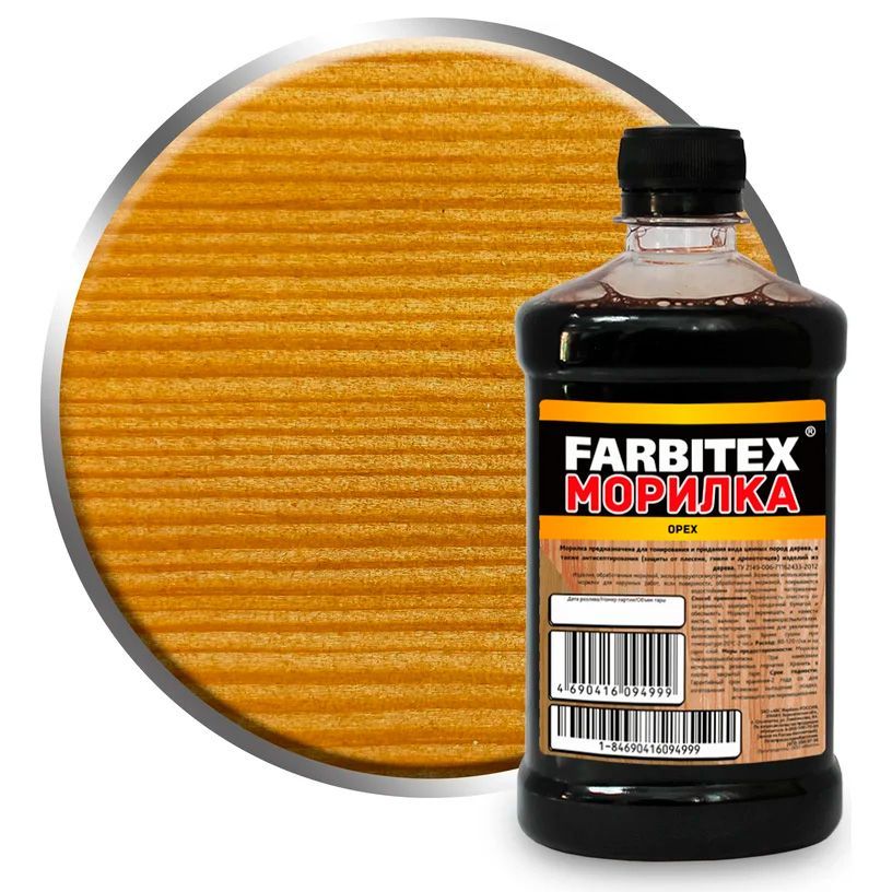Морилка Farbitex предназначена для тонирования и придания вида ценных пород дерева, а также для защиты от плесени, гнили и древоточцев изделий из дерева, эксплуатирующихся внутри помещений. Возможно использование морилки для наружных работ, если поверхности, обработанные морилкой, покрываются водостойкими лакокрасочными материалами. Экологически чистая. Легко наносится, даже непрофессионалом (кистью, губкой, валиком, распылителем).