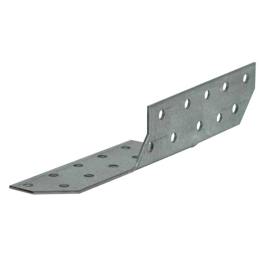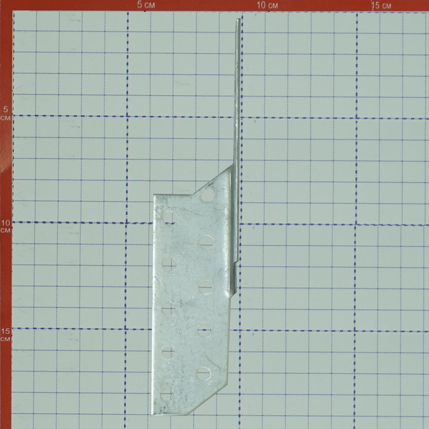Держатель балки 170х40х40 мм в левостороннем исполнении изготовлен из стали горячего оцинкования толщиной 2 мм. Это уголок специальной формы для соединения элементов домов из дерева, включая несущие конструкции. На обеих сторонах держателя имеется по 10 отверстий под гвозди и шурупы. Позволяет производить монтаж балок под косым углом, что не влияет на несущую способность конструкции.