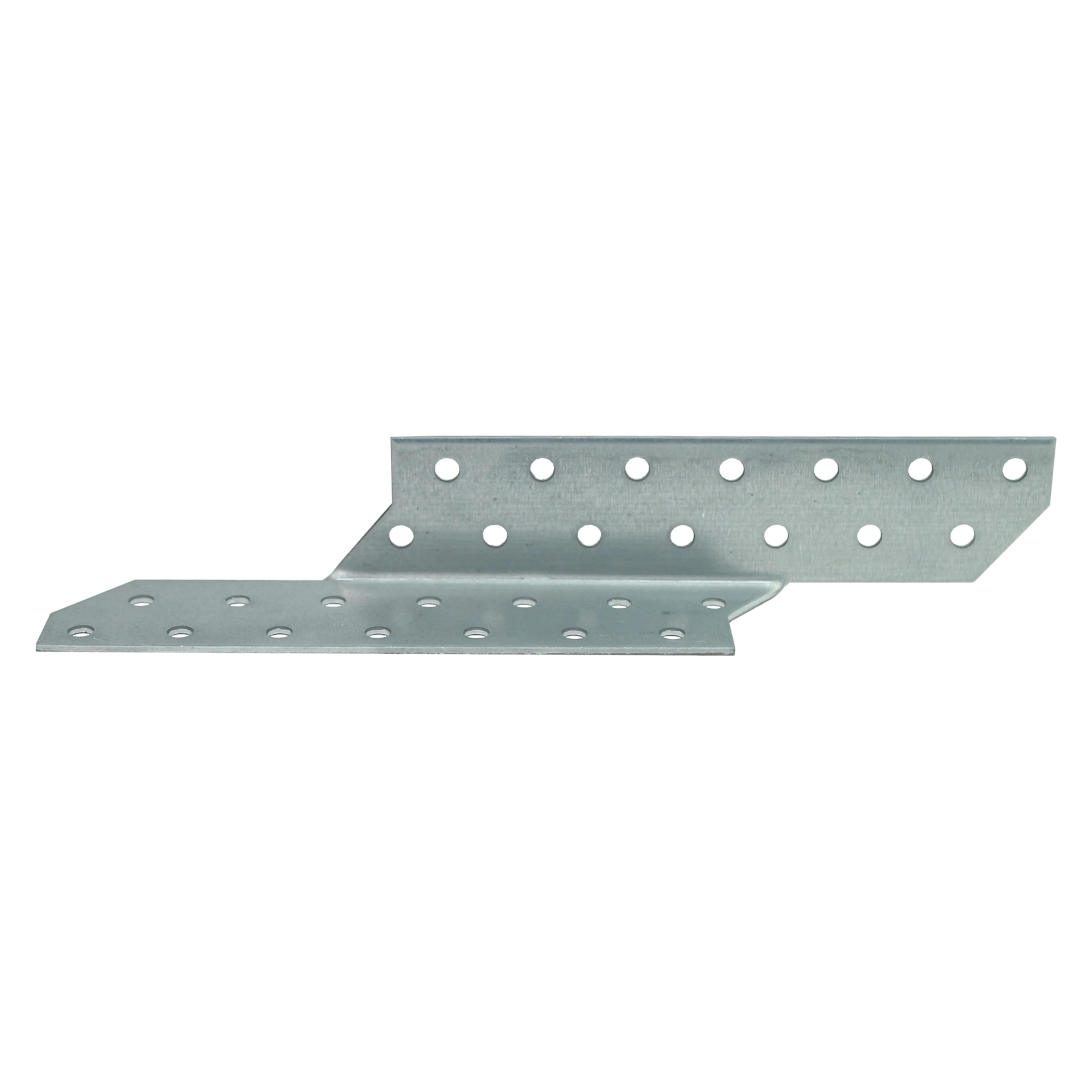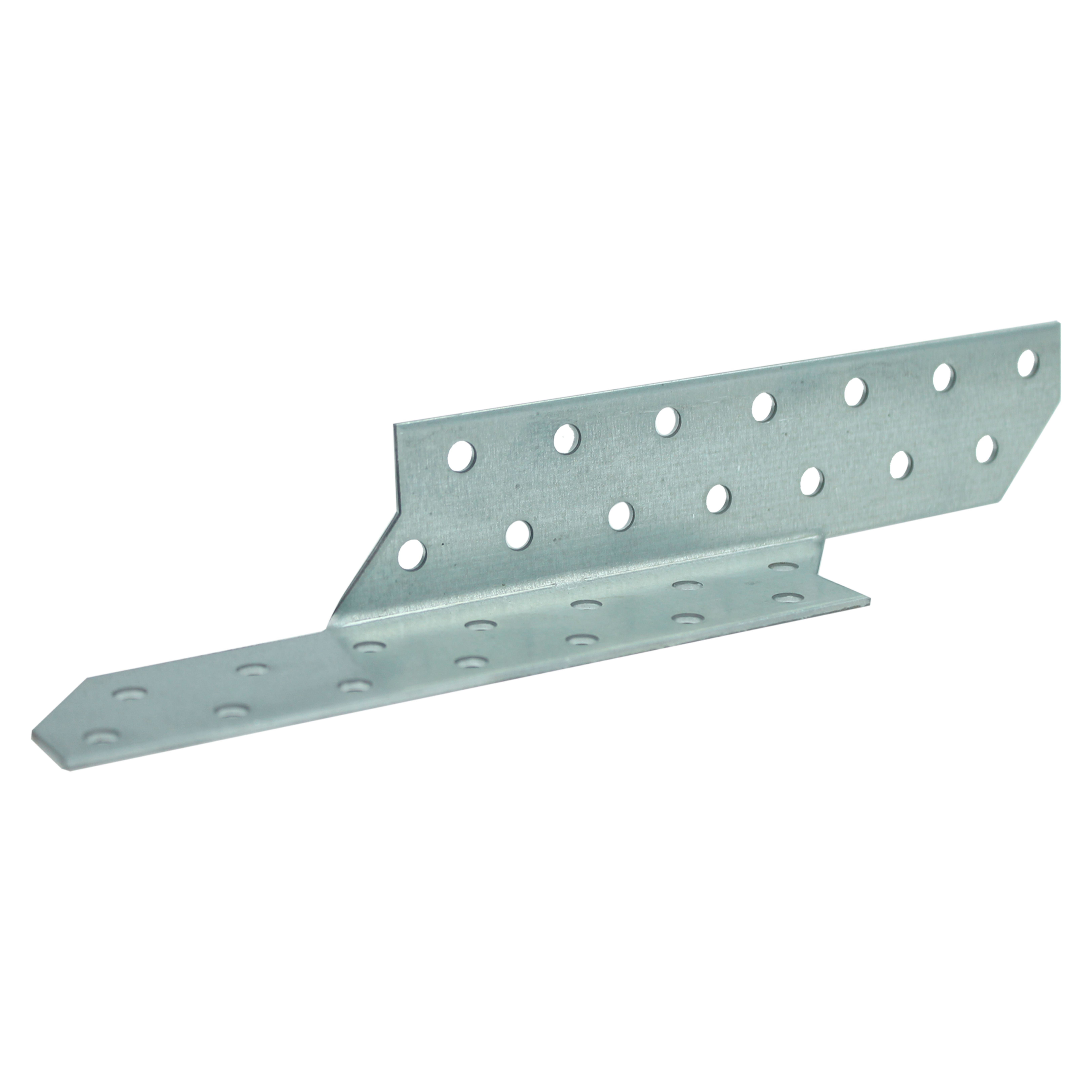 Держатель балки в правостороннем исполнении изготовлен из стали горячего оцинкования толщиной 2 мм. Это уголок специальной формы для соединения элементов домов из дерева, включая несущие конструкции. На обеих сторонах держателя имеется по 10 отверстий под гвозди и шурупы. Позволяет производить монтаж балок под косым углом, что не влияет на несущую способность конструкции.